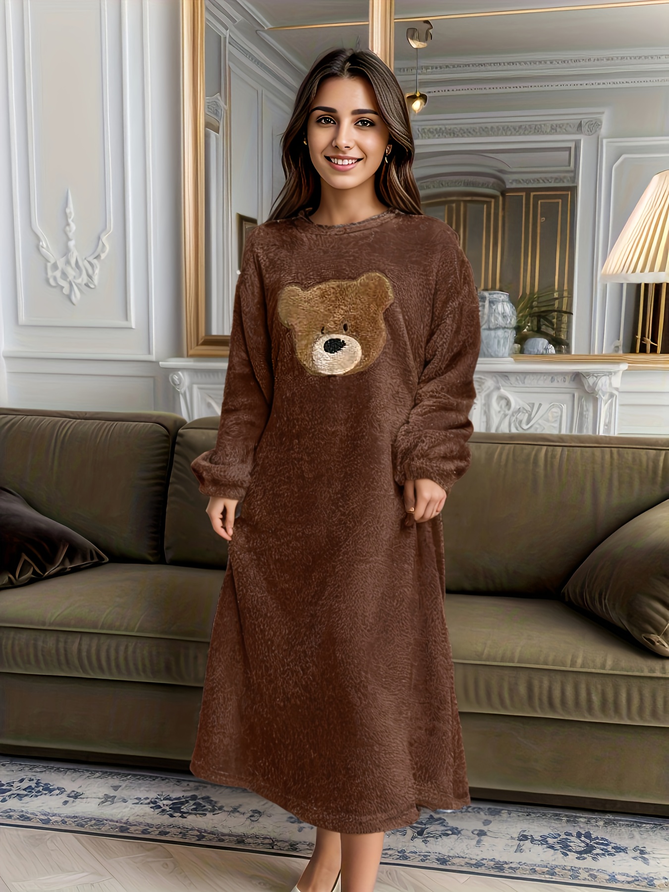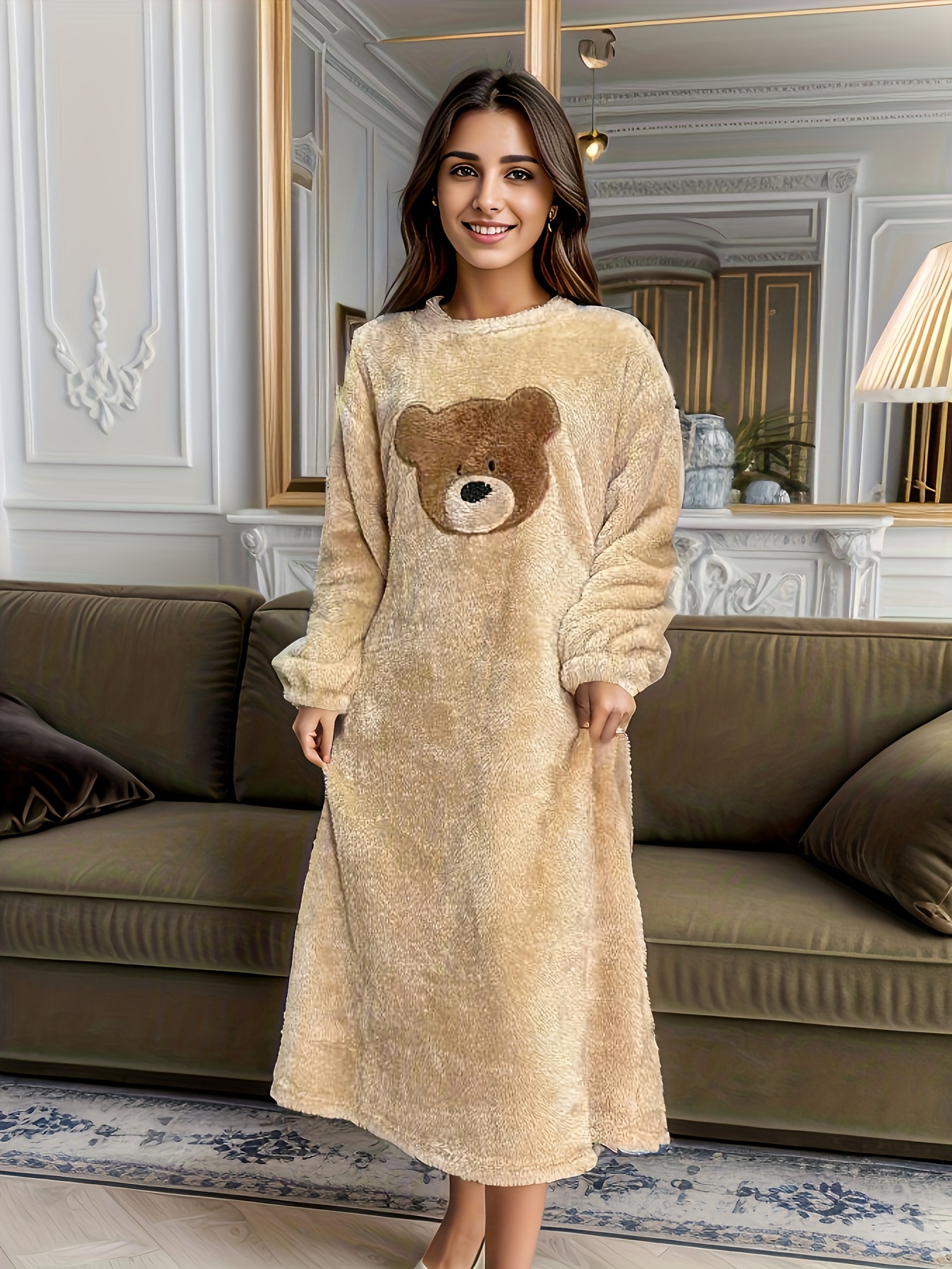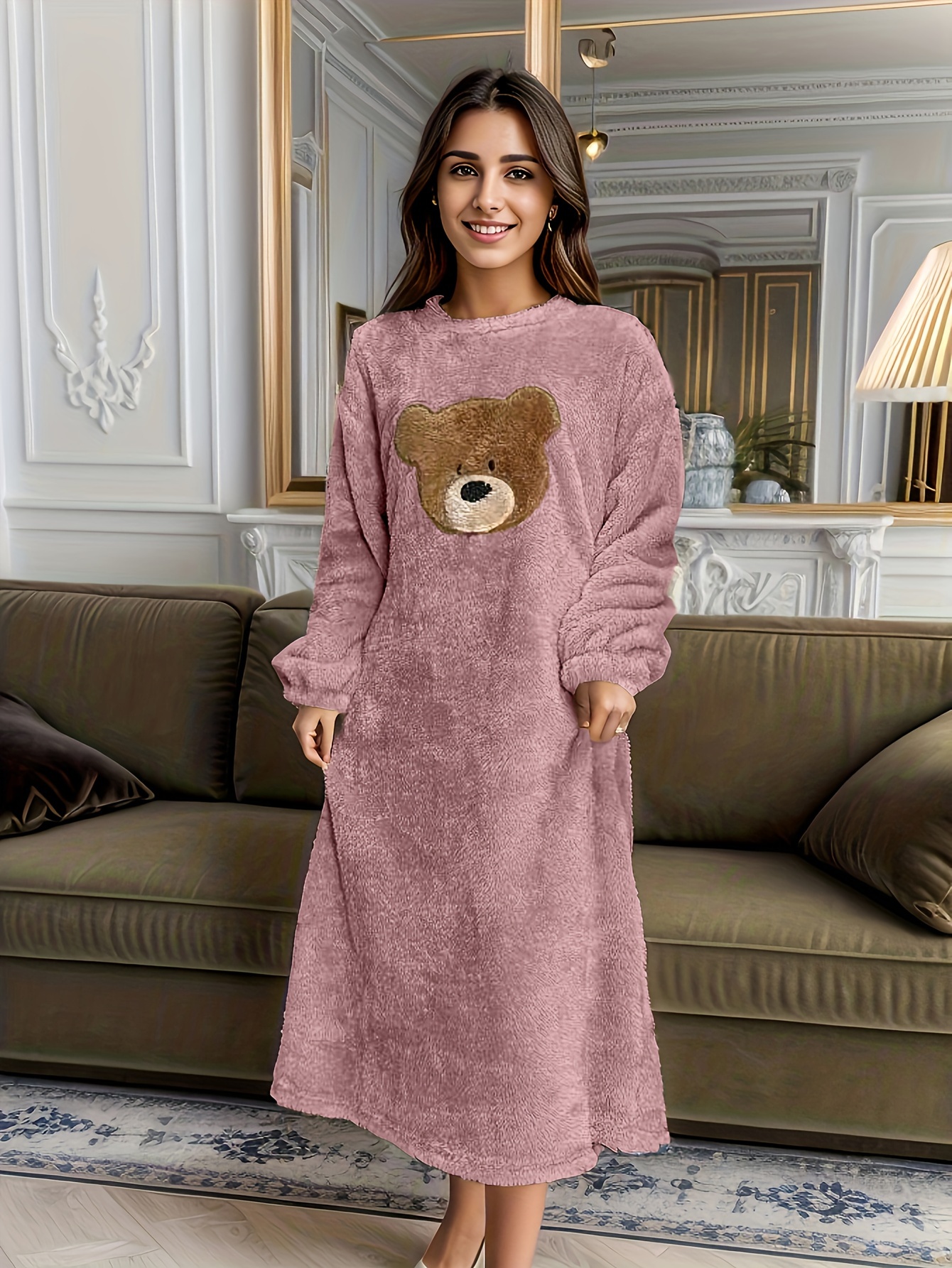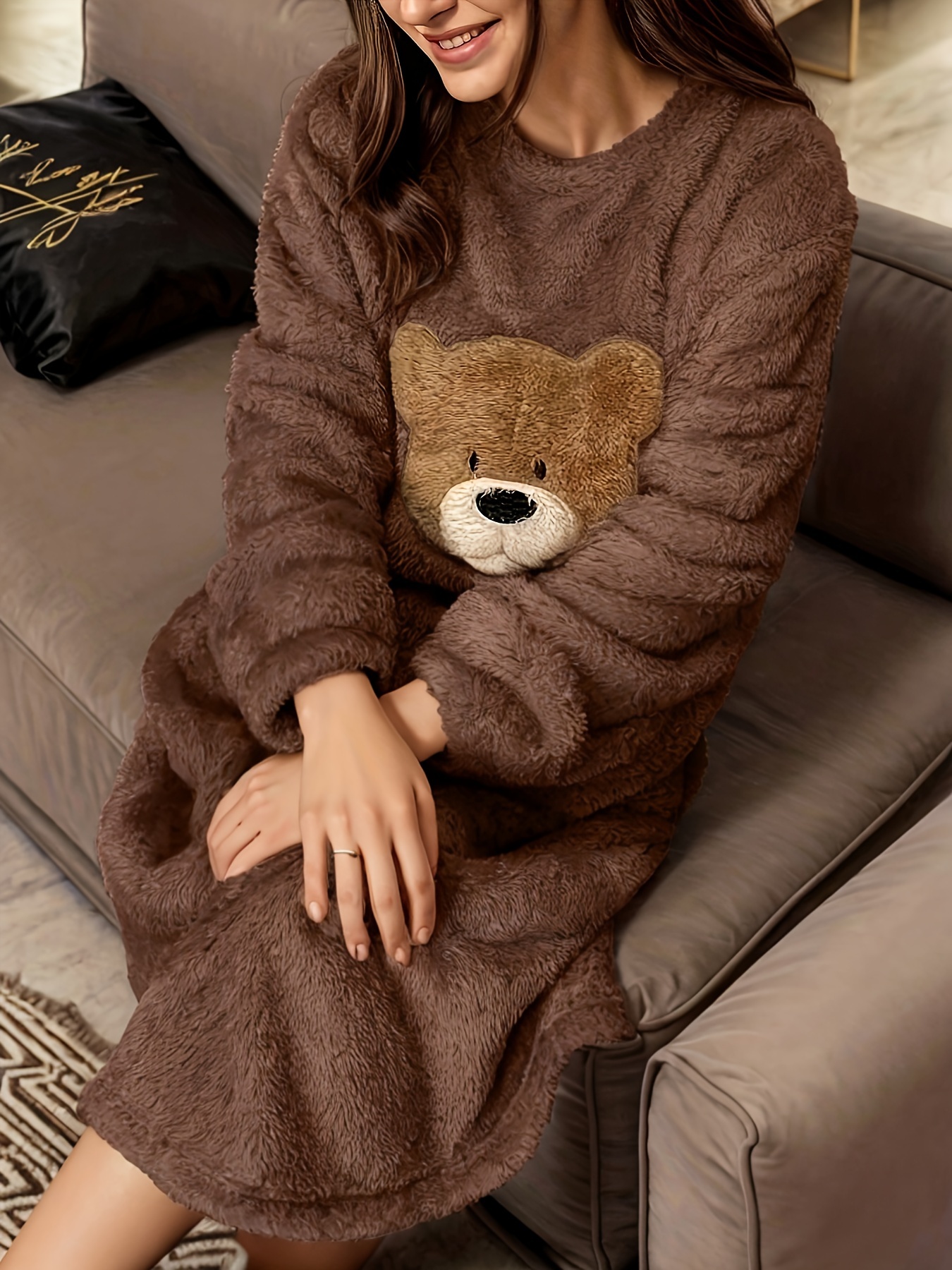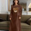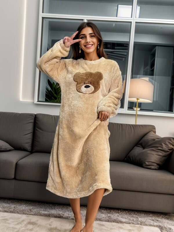 - تصميم الدب اللطيف: يتميز بتطريز دب ساحر يضيف لمسة من الجاذبية والمرح، لتظهري بأناقة حتى في أوقات الاسترخاء المنزلية.