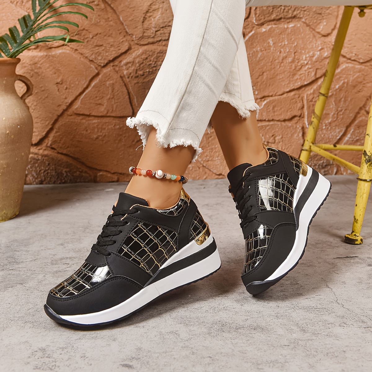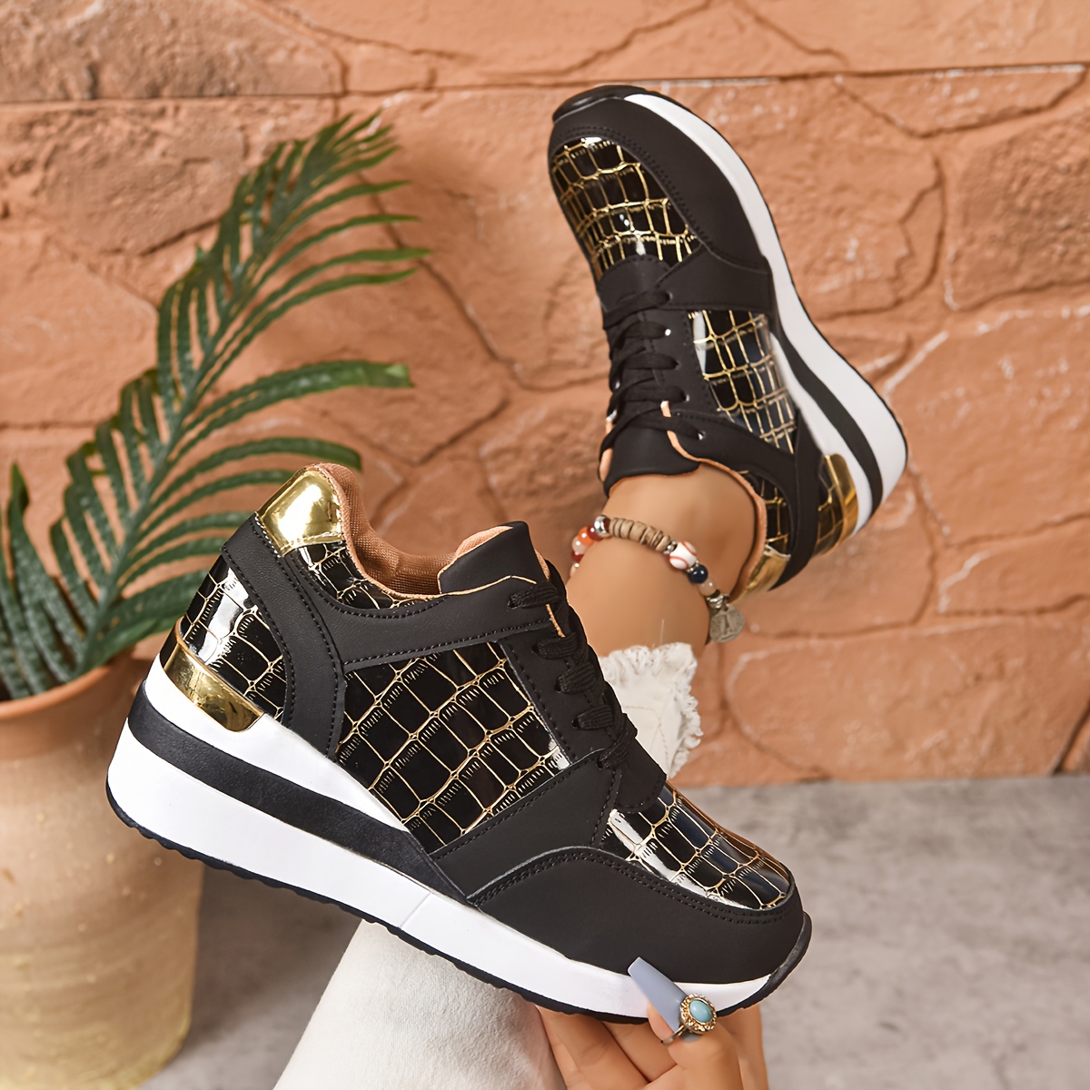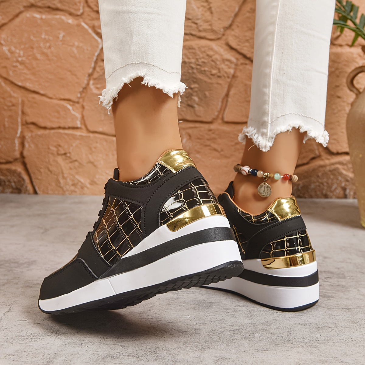 تألقي بأسلوب فريد: حذاء رياضي عصري بنقوش هندسية ذهبية!