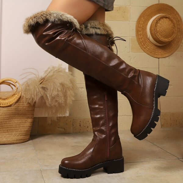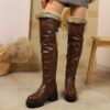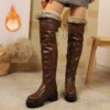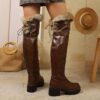 - تصميم فريد وجذاب: بوت نسائي بني فاخر بتصميم عصري يصل فوق الركبة، يجمع بين الأناقة الجريئة واللمسة الكلاسيكية مع مقدمة دائرية وكعب عريض ثابت، ليمنحكِ إطلالة ساحرة ومميزة في كل ظهور.