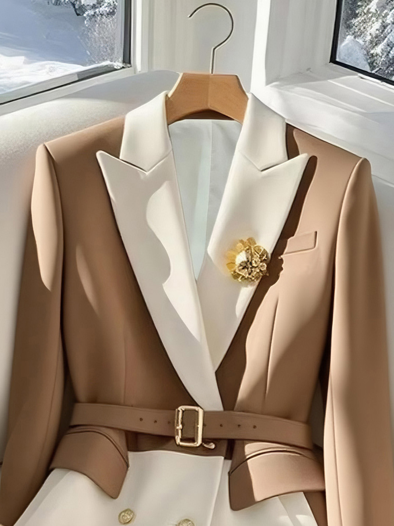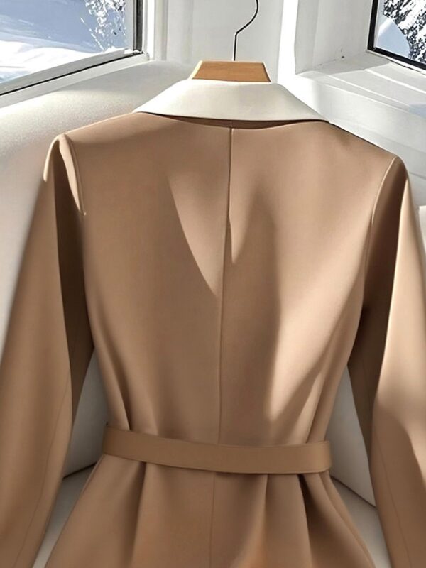 - تصميم فريد مزدوج الصدر: يبرز أناقتك الكلاسيكية بلمسة عصرية، مع تفاصيل أزرار مزدوجة تضفي طابعاً مميزاً.