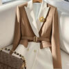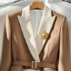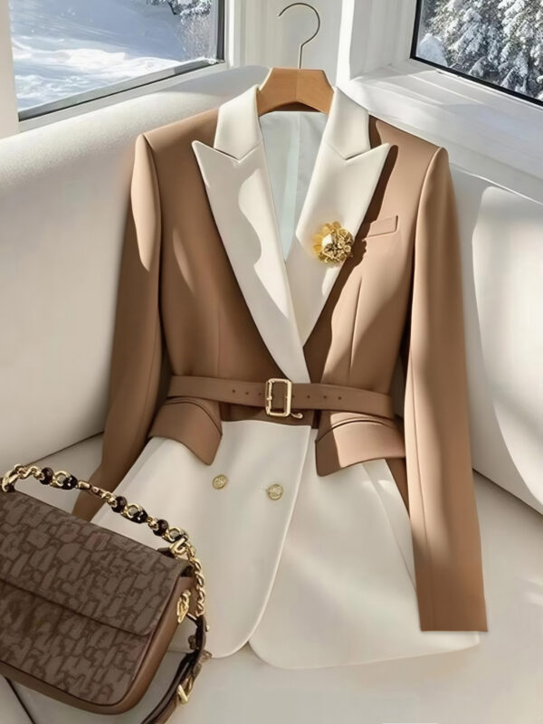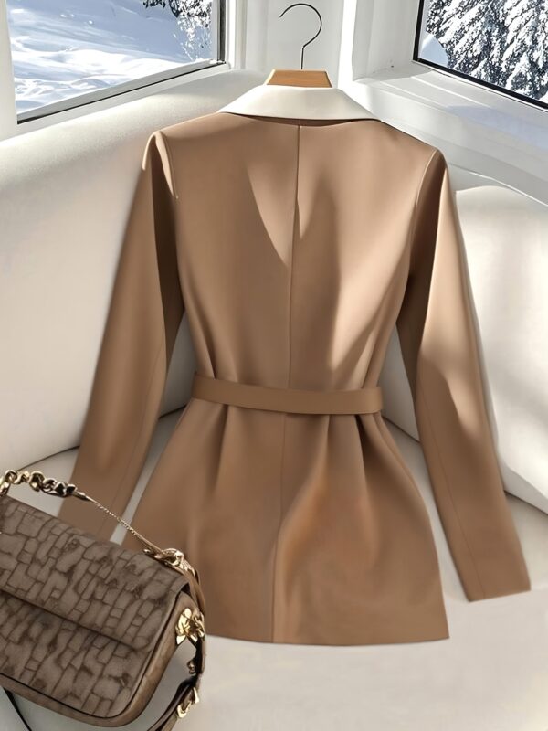 أضيفي لمسة من الرقي والأناقة إلى خزانتك مع هذا البليزر النسائي الرائع المزدوج الصدر والمزود بحزام. مصمم ليناسب إطلالاتك المتنوعة من المكتب إلى اللقاءات الكاجوال، يمنحك هذا البليزر مظهراً جذاباً ومفعماً بالثقة في فصلي الربيع والخريف.