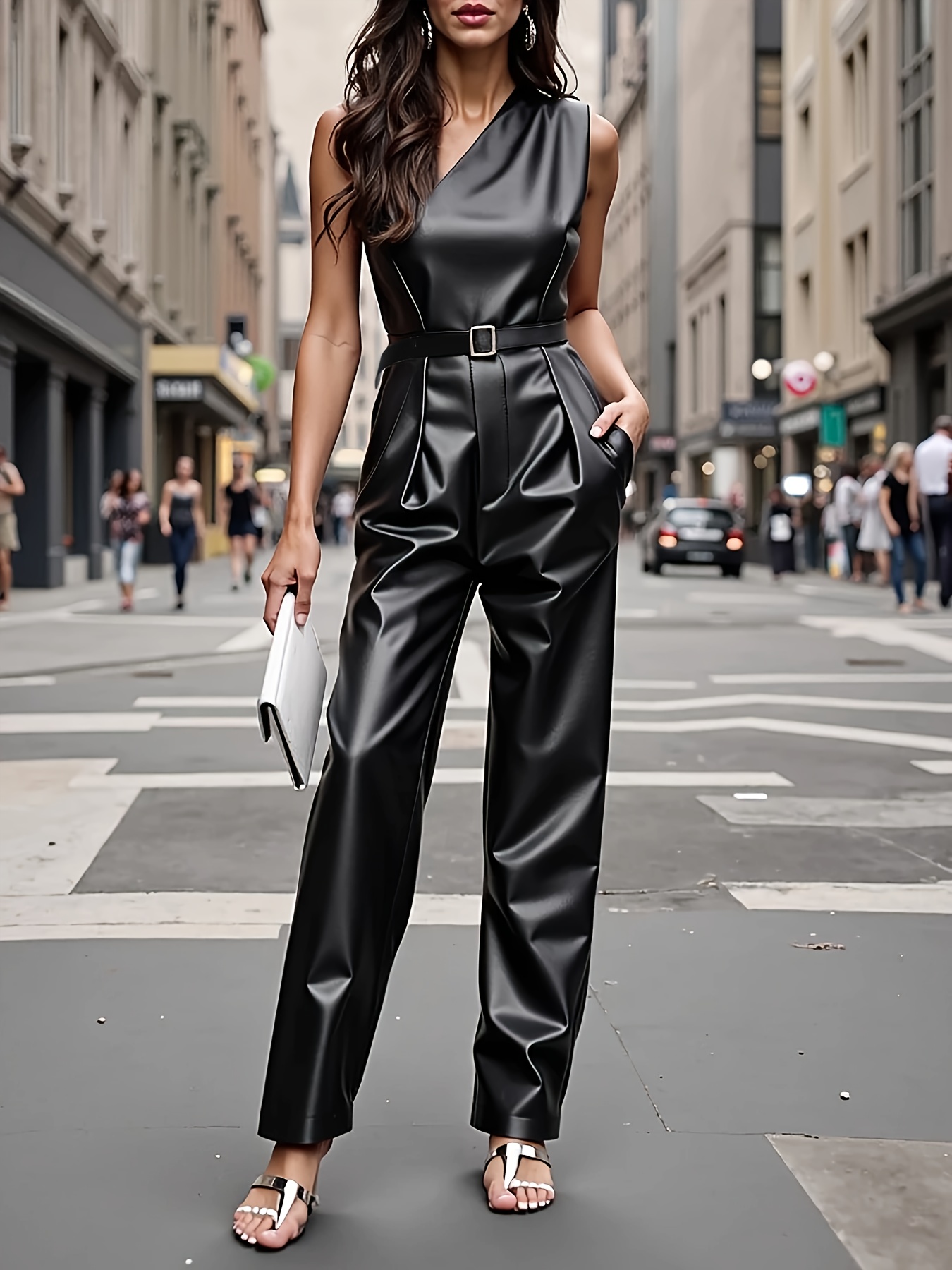 اخطفي الأنظار بأناقتك العصرية مع هذا الجامبسوت النسائي الأسود الأنيق بلا أكمام. صُمم خصيصًا ليمنحك إطلالة جذابة ومريحة في آن واحد، سواء كنتِ تستعدين لنزهة مسائية غير رسمية أو لمناسبة تتطلب لمسة من الرقي. تصميمه عالي الخصر مع حزام قابل للتعديل يبرز قوامك بأسلوب فريد ومميز.