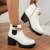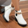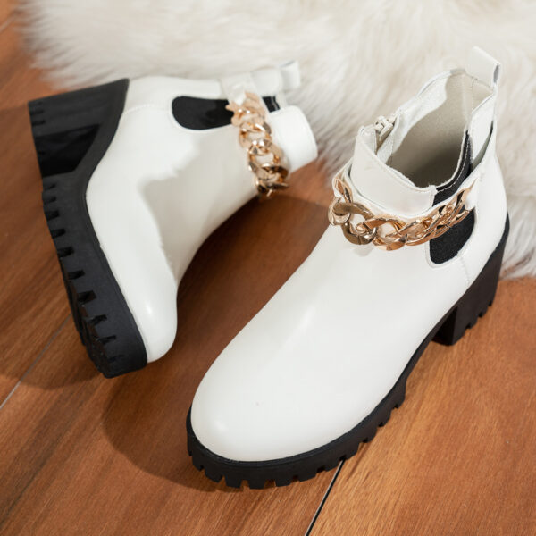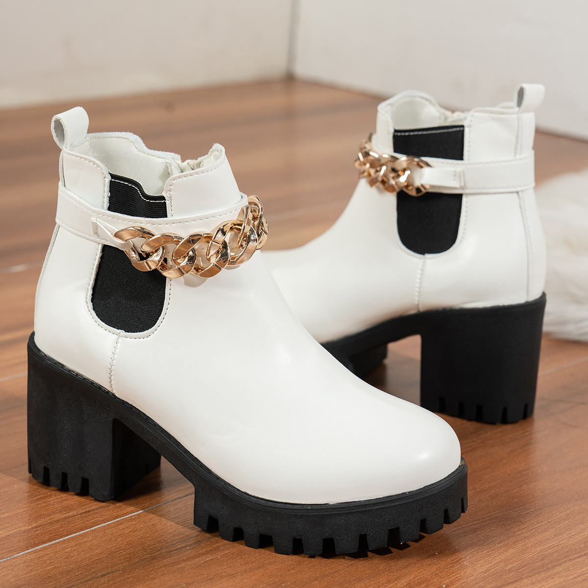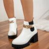 تألقي بكل ثقة وأناقة مع حذاء الكاحل الأبيض بالكعب العريض، الرفيق المثالي لإطلالاتكِ المتنوعة. مصمم ليجمع بين الفخامة العصرية والراحة المطلقة، ليجعل كل خطوة تخطينها تعبر عن شخصيتكِ المتفردة. سواء كنتِ تستعدين ليوم عمل حافل أو لمناسبة خاصة، سيضفي هذا الحذاء لمسة من الرقي والجاذبية على مظهركِ.