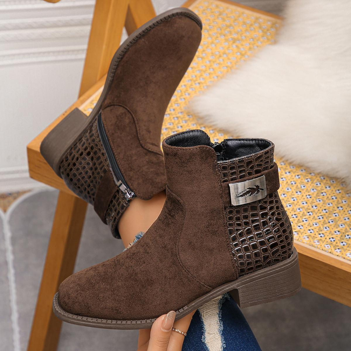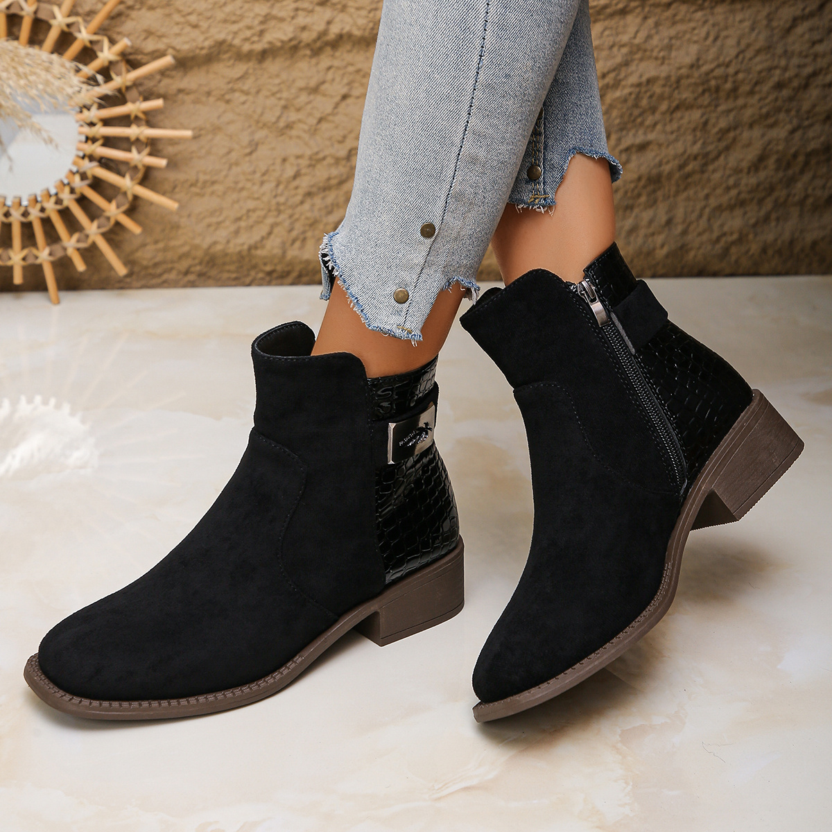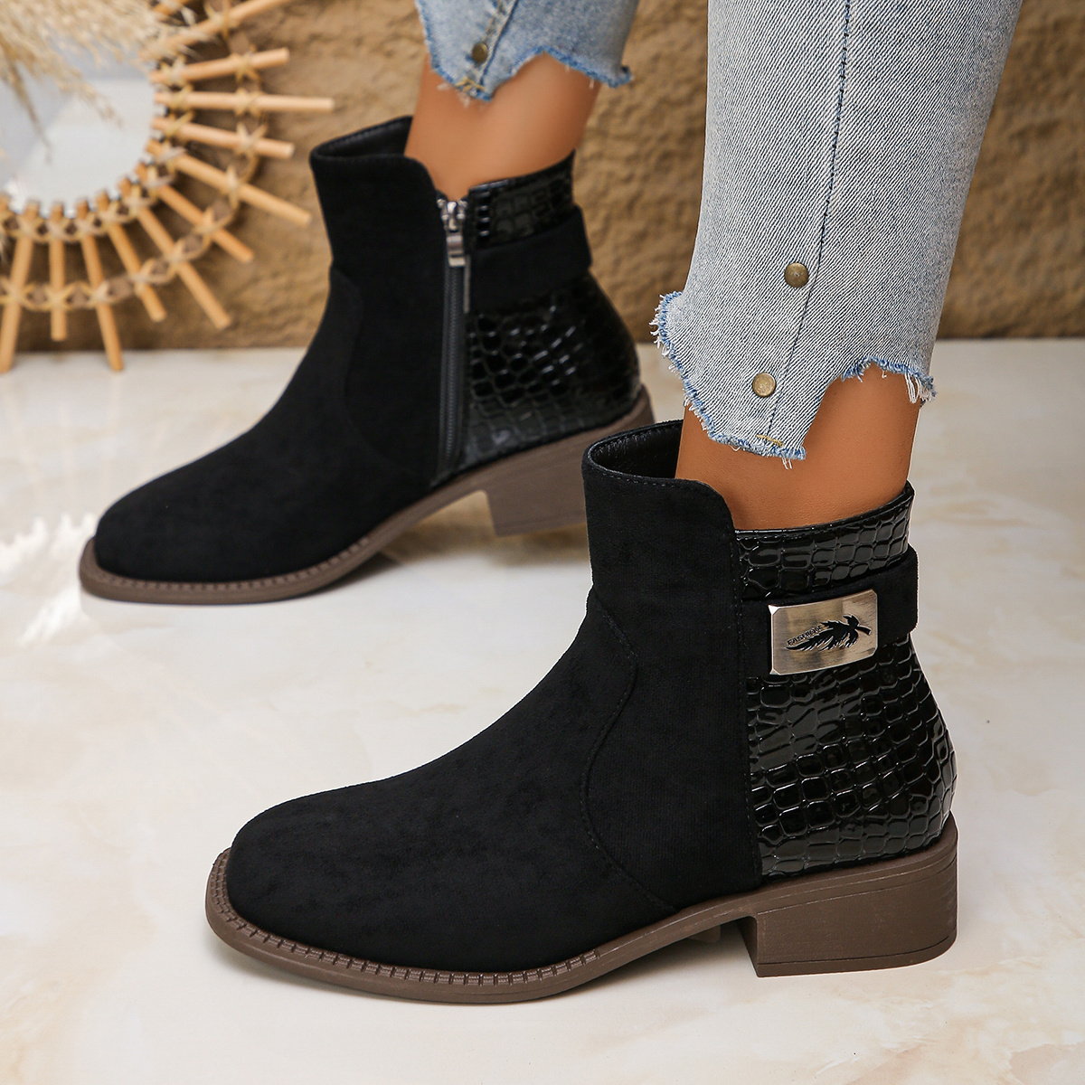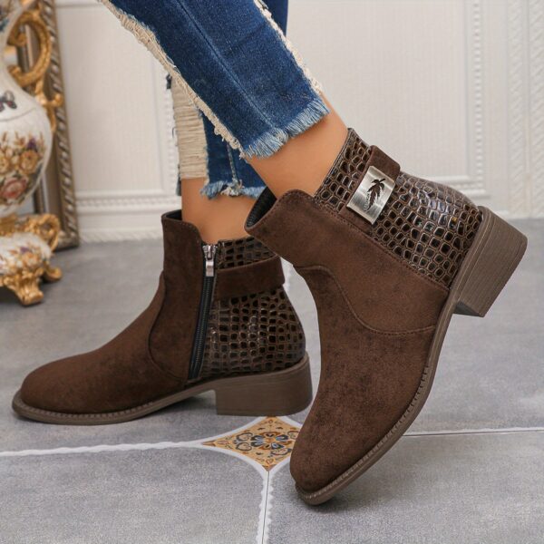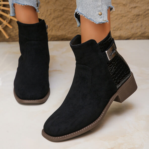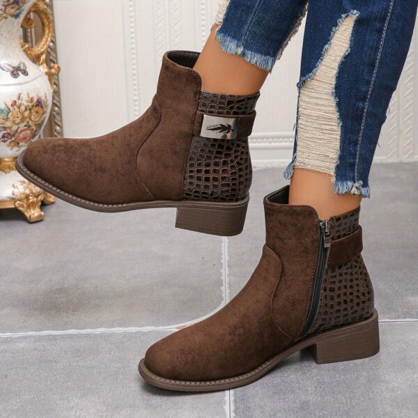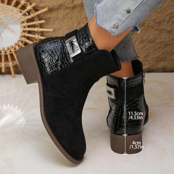 - أناقة عصرية وكلاسيكية: تصميم حذاء كاحل أنيق بمقدمة دائرية، يمزج بين الفخامة العصرية والجاذبية الكلاسيكية ليناسب جميع إطلالاتك في الخريف والشتاء.