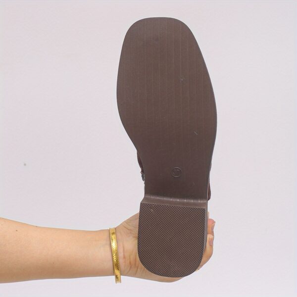 - راحة فائقة طوال اليوم: يتميز بكعب بلوك متوسط الارتفاع (Mid Heel) يمنحك ثباتًا وراحة استثنائيين، بالإضافة إلى بطانة داخلية ناعمة من القماش ونعل داخلي مصمم بعناية فائقة لرفاهية قدميك.