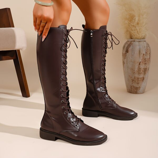 - إغلاق مزدوج أنيق وعملي: يتميز بسحاب جانبي لسهولة الارتداء والخلع، مع أربطة أمامية تضفي لمسة جمالية قابلة للتعديل وتضمن ملاءمة مثالية لقدمكِ وساقكِ.