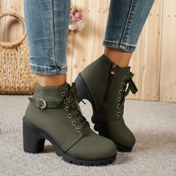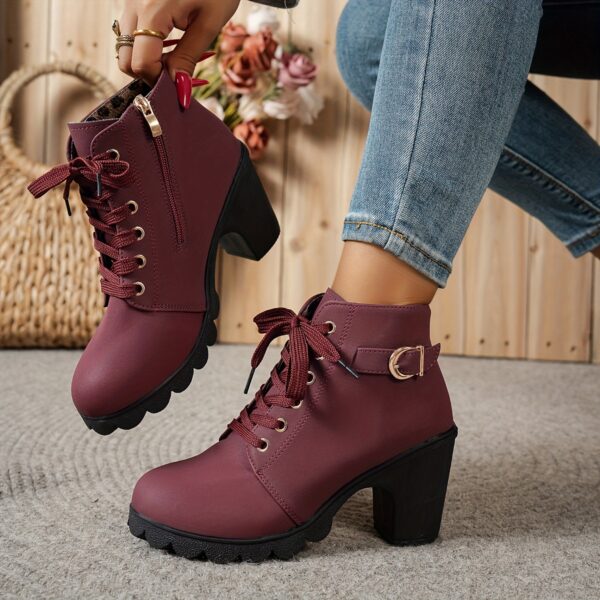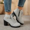 - سهولة الارتداء والملاءمة المثالية: يشتمل على سحاب جانبي لسهولة الارتداء والخلع، بالإضافة إلى رباط أمامي يتيح لكِ تعديل الحذاء ليناسب قدمكِ تماماً، مما يضمن ملاءمة مريحة ومحكمة.