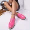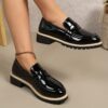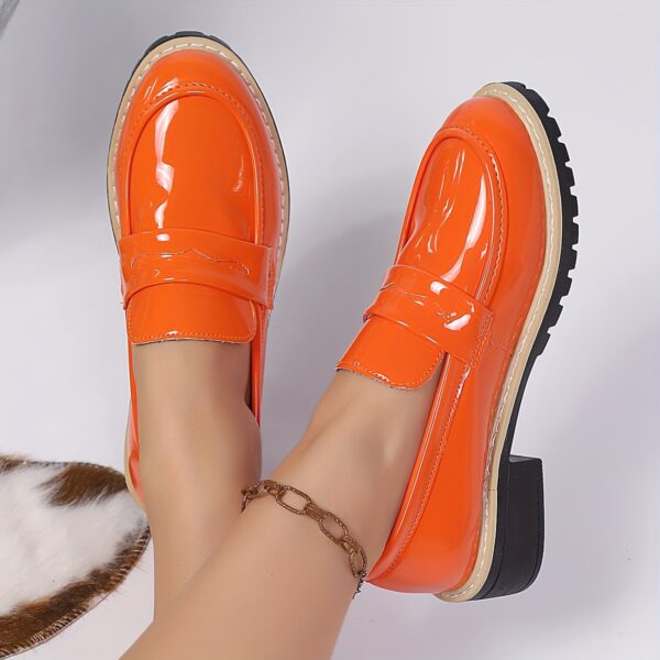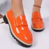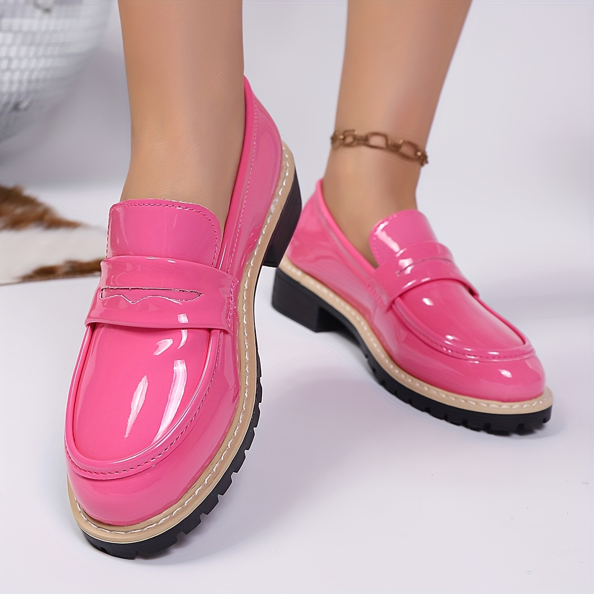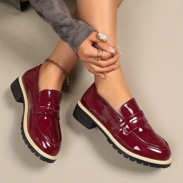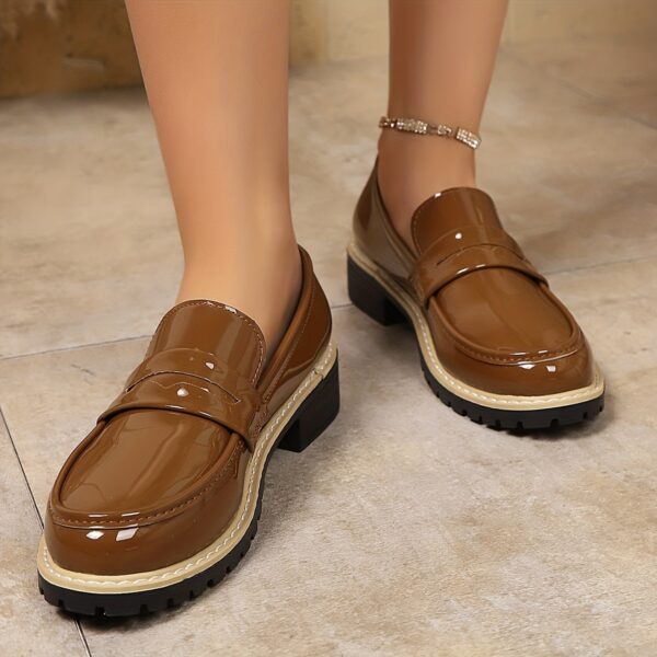- تصميم فريد وجذاب: يتميز بتصميم بلاتفورم عصري يجمع بين أناقة حذاء ماري جين الكلاسيكي وراحة اللوفر العملي. يأتي بلون بني لامع يضفي لمسة من الرقي والفخامة، ومقدمة دائرية مريحة لتجربة ارتداء مثالية.