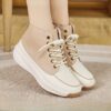- ألوان أنيقة وتصميم انسيابي: تدرجات البيج والأبيض الناعمة تتناغم بانسجام مع تصميم الحذاء الأنيق والانسيابي، مما يجعله إضافة راقية ومتميزة لأي زي، من الكاجوال إلى الأكثر رسمية.