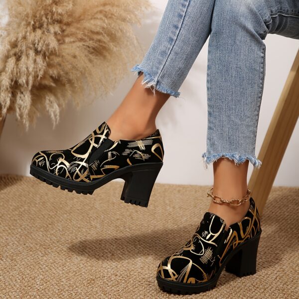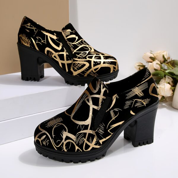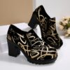 • كعب ومنصة بارزان: استمتعي بارتفاع وثبات مثاليين مع كعب سميك يتجاوز 4-5 سم، ومنصة تمنحك راحة لا مثيل لها وتضيف لمسة عصرية جريئة لإطلالتك.