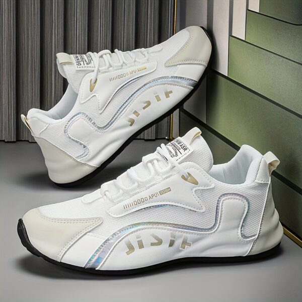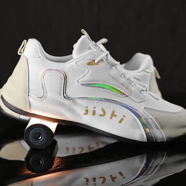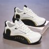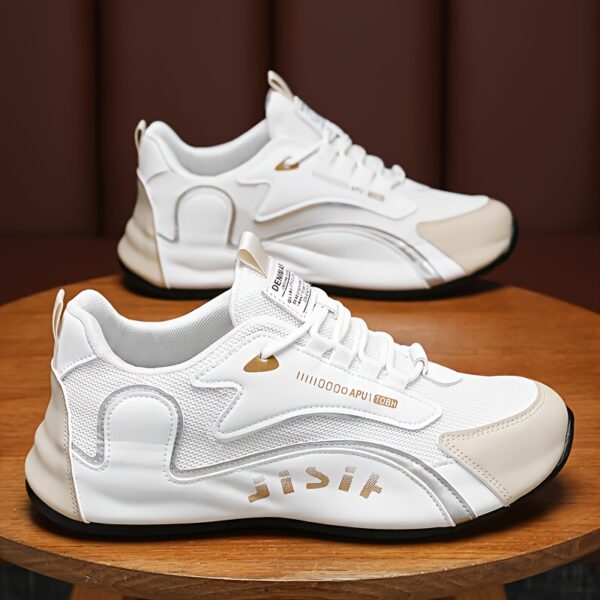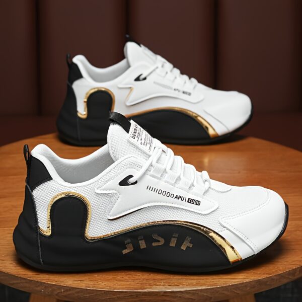 - تصميم آسر وعصري: يجمع ببراعة بين اللونين الأبيض والأسود الكلاسيكيين، مع لمسات ذهبية متلألئة تضفي لمسة من الفخامة والتميز على إطلالتك، بأسلوب “Low-Top” (كعب منخفض) عصري يسهل ربطه بإحكام.