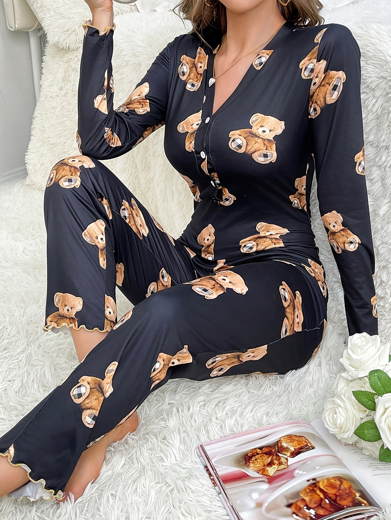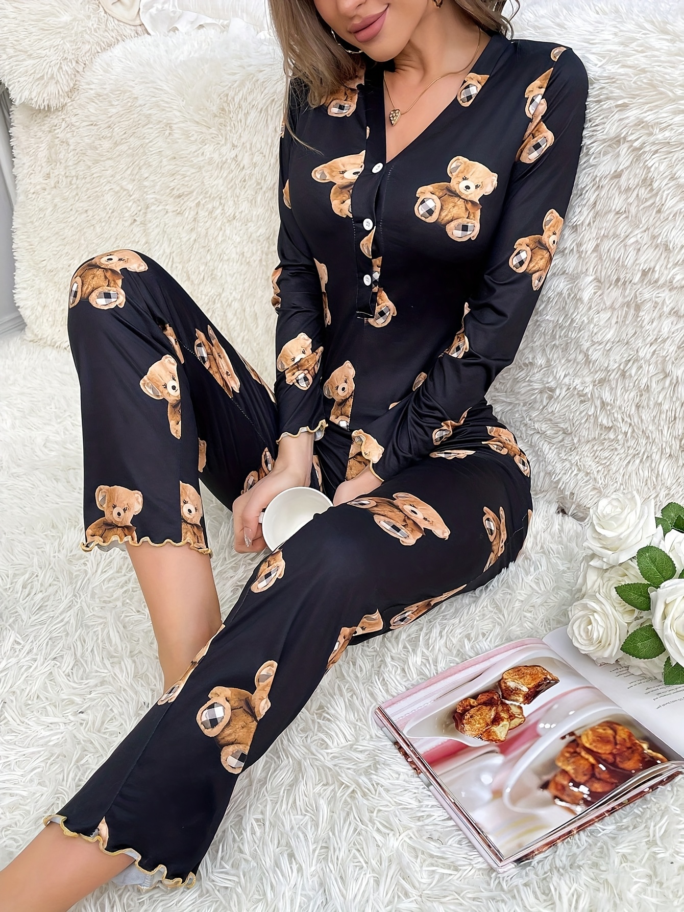- تصميم الدب المرح: يتميز بنقوش دببة كرتونية ساحرة تضفي لمسة من اللطافة والمرح على إطلالتكِ، لتشعري بالبهجة والدلال.