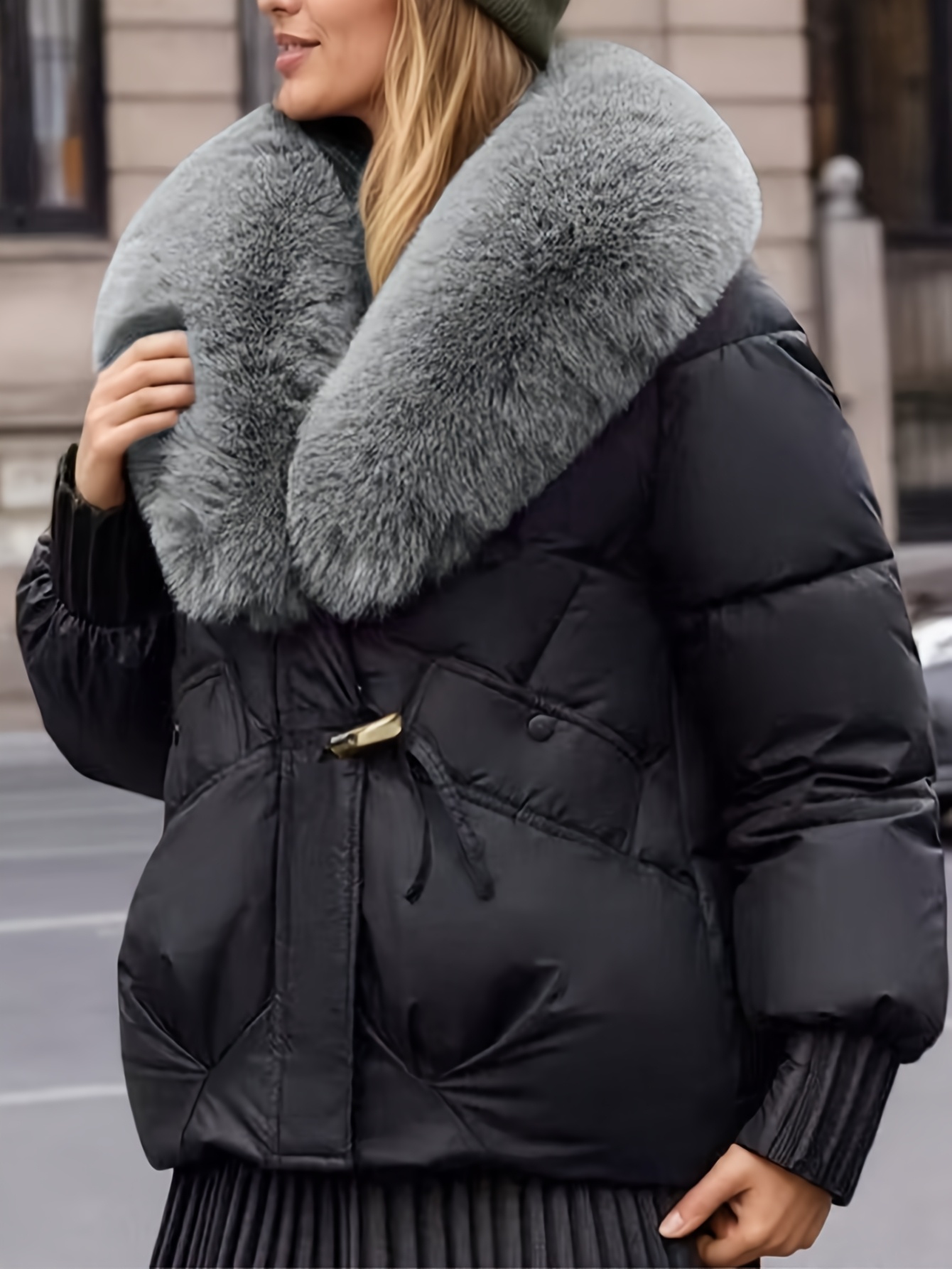 - دفء فاخر: بطانة داخلية كاملة من الفرو الصناعي الناعم توفر لك دفئًا استثنائيًا في أبرد الأيام، مع ملمس فائق النعومة على بشرتك.