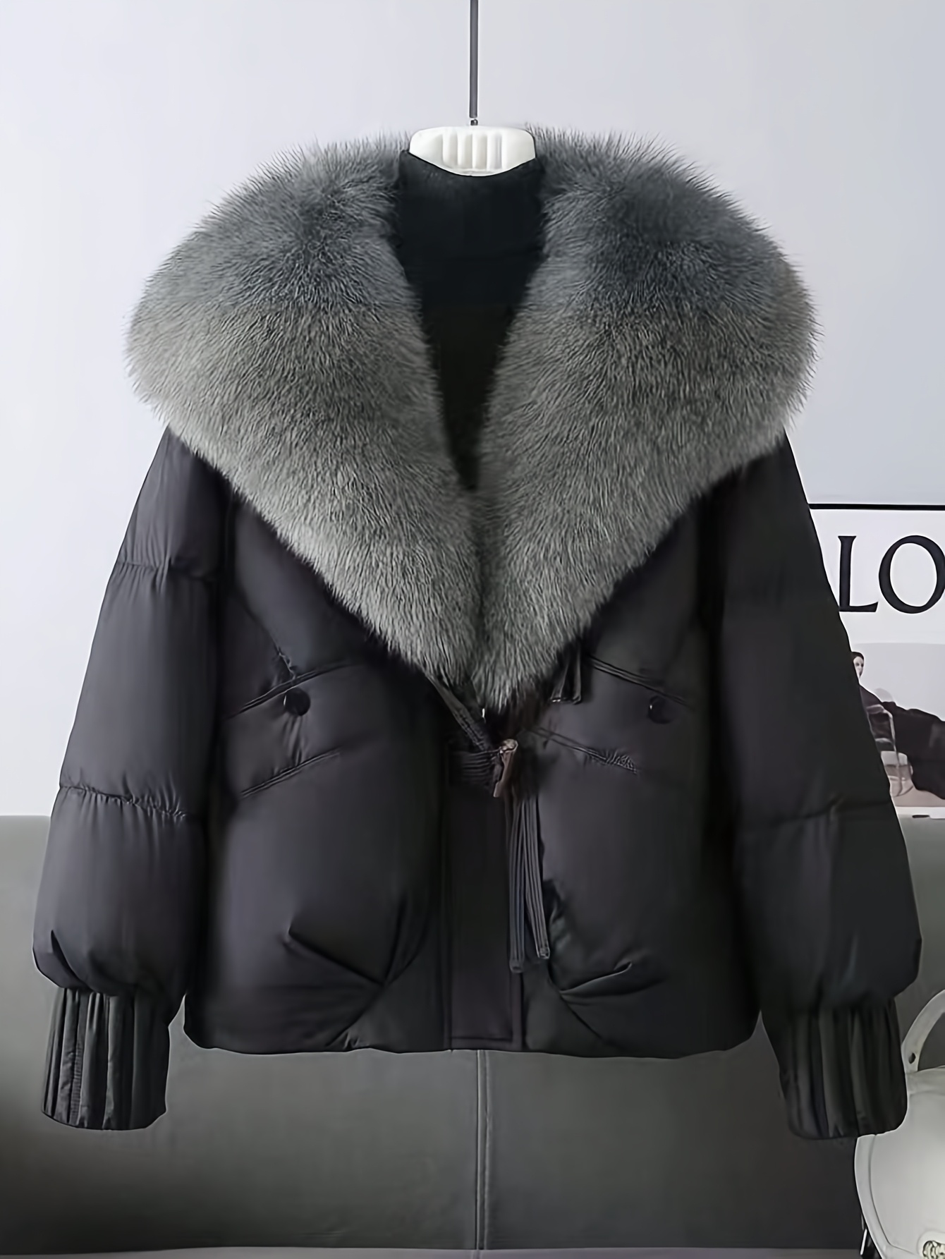 استعدي لاستقبال الشتاء بأناقة لا مثيل لها مع جاكيتنا النسائي القصير المبطن بالفرو الصناعي. مصمم ليمنحك الدفء الفائق والراحة القصوى دون التنازل عن اللمسة العصرية والأنيقة. قطعة أساسية لا غنى عنها في خزانة ملابسك لموسم البرد.