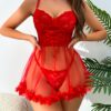 - طقم متكامل للأنوثة: يأتي الفستان مع سروال داخلي (ثونغ) مطابق يكمل الإطلالة الساحرة، ليمنحك شعوراً بالدلال والانسجام من الرأس حتى أخمص القدمين.
