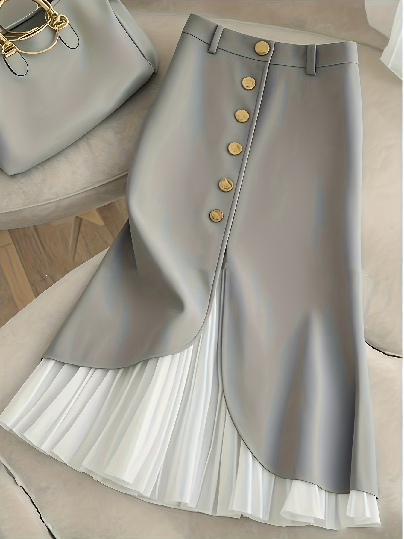 تنورة أنيقة بقصة A-Line وحافة مكشكشة – تصميم زر أمامي للرقي في كل مناسبة وموسم