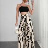 - نقشة تجريدية آسرة: يتميز بنقشة هندسية تجريدية باللونين الأبيض والأسود، تجمع بين الكلاسيكية والعصرية، سهلة التنسيق وتضمن لكِ إطلالة غير شفافة لراحة وثقة تامة.