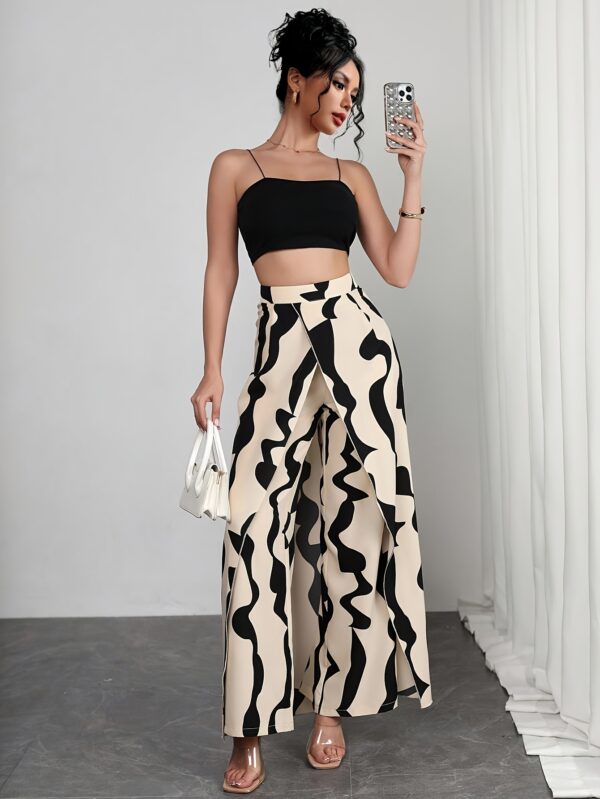 اكتشفي قمة الأناقة والراحة مع بنطلوننا النسائي المميز ذو القصة الواسعة والتصميم العصري غير المتماثل. قطعة أساسية تضفي لمسة من التميز على إطلالتك في كل مناسبة، مصممة لتواكب صيحات الموضة وتضمن لكِ حضوراً آسراً.
