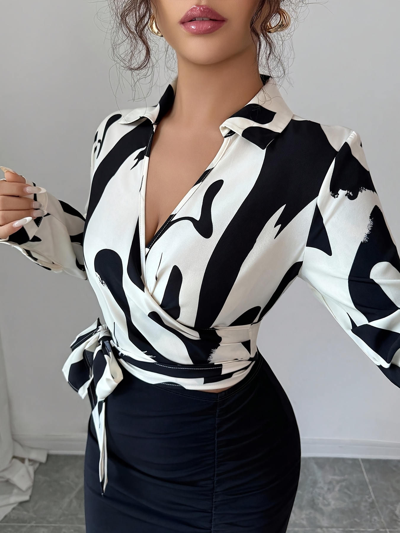 - بلوزة أنيقة وعملية: تأتي البلوزة بأكمام طويلة وتصميم مزرّر وياقة لابل كلاسيكية، لتوفير إطلالة أنيقة ومريحة في آن واحد.