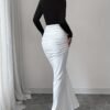 - راحة فائقة وملاءمة مثالية: مصنوع من مزيج فاخر من البوليستر والإيلاستين (95% بوليستر، 5% إيلاستين)، يوفر هذا الفستان مرونة متوسطة تضمن لكِ حرية الحركة وراحة استثنائية طوال الأمسية، مع قصة ضيقة تبرز قوامكِ بأناقة.