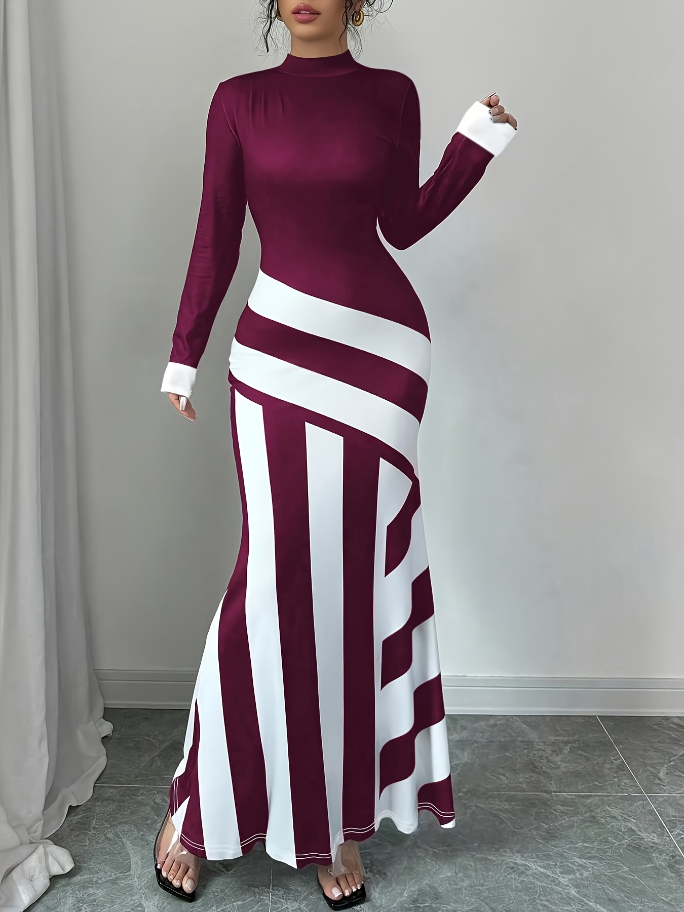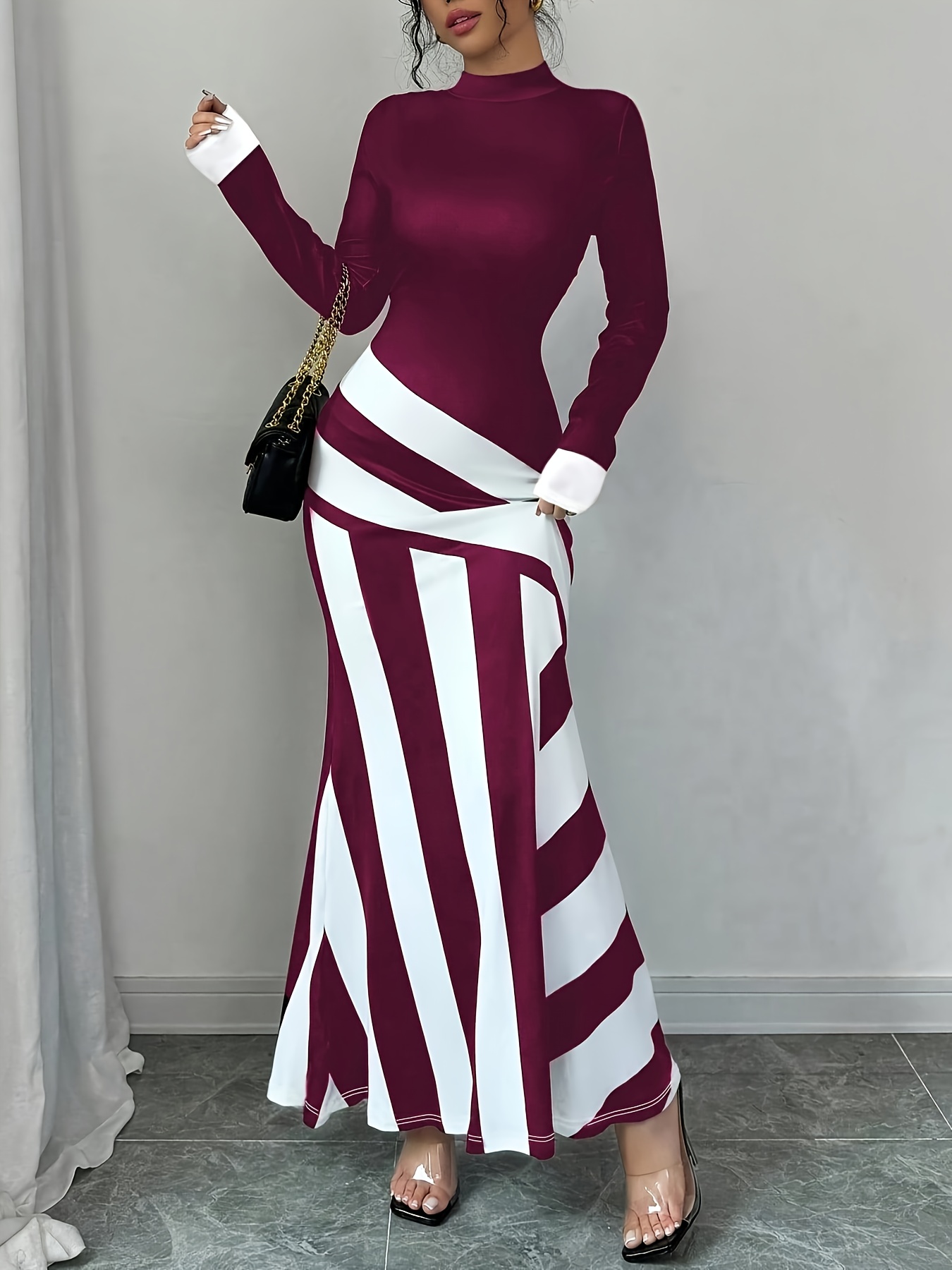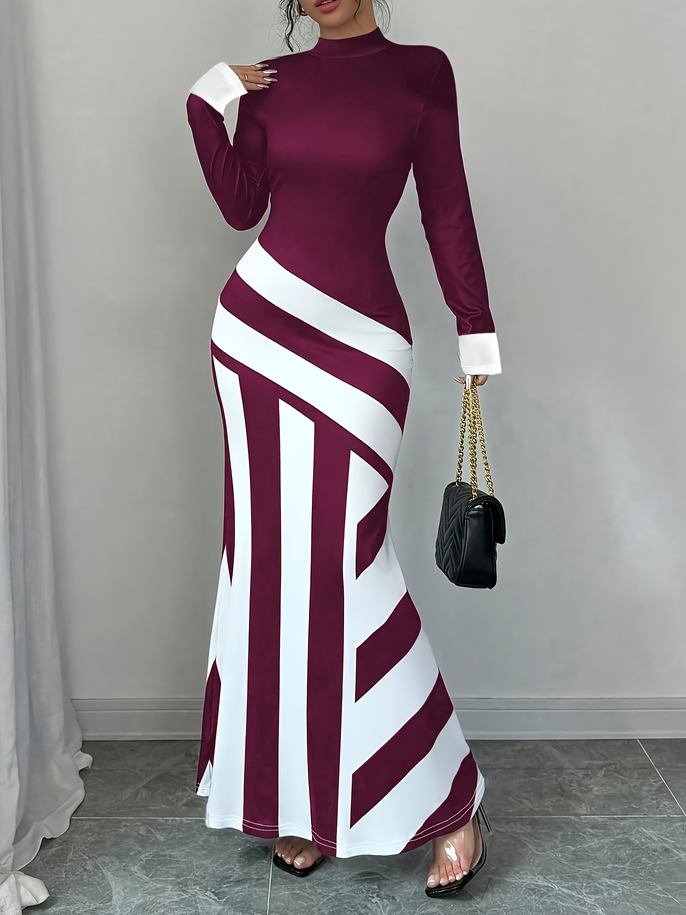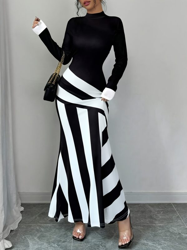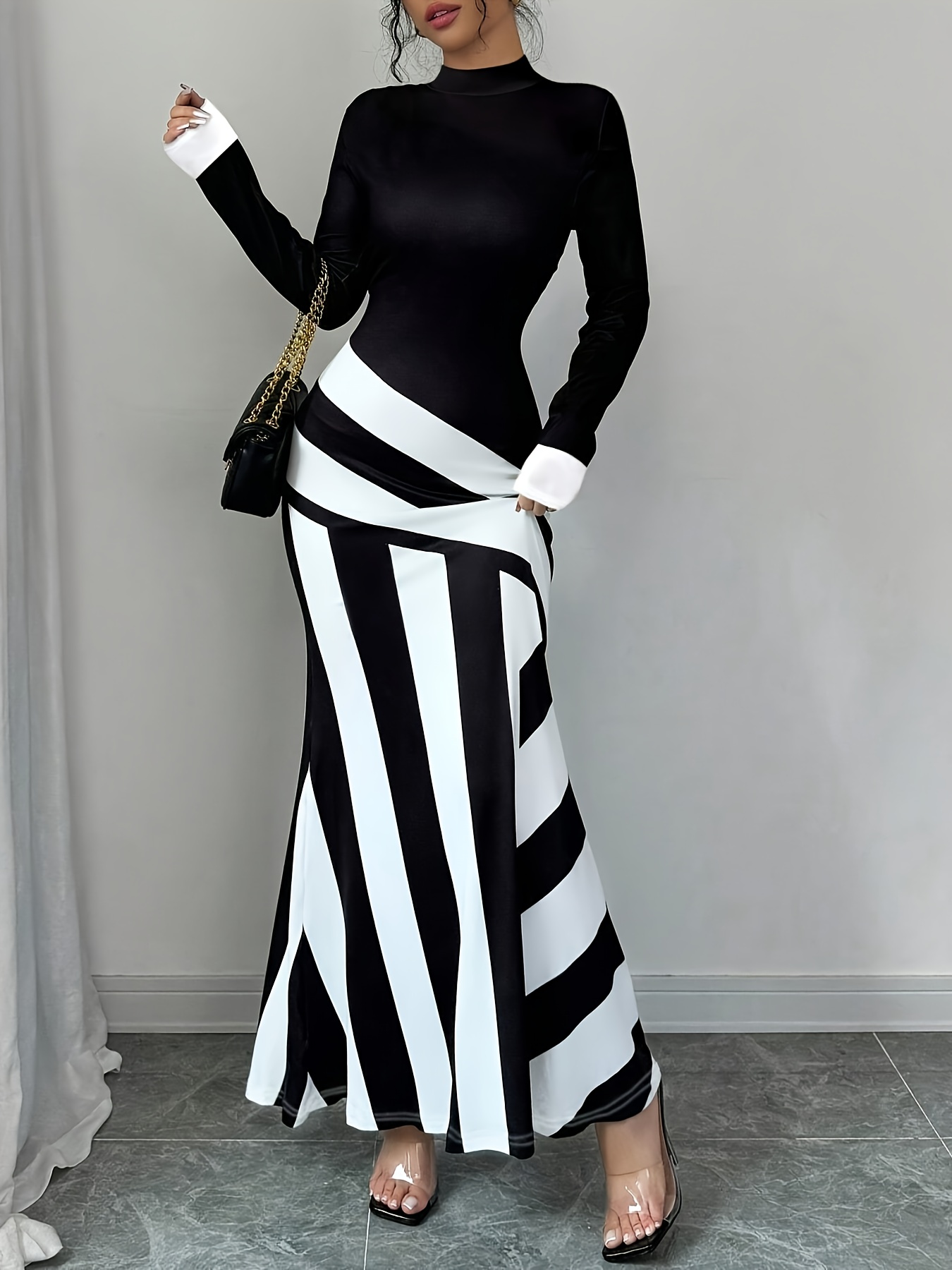 فستان حورية البحر الساحر: أناقة هندسية بالأسود والأبيض بقصة ضيقة لمناسباتكِ الخاصة