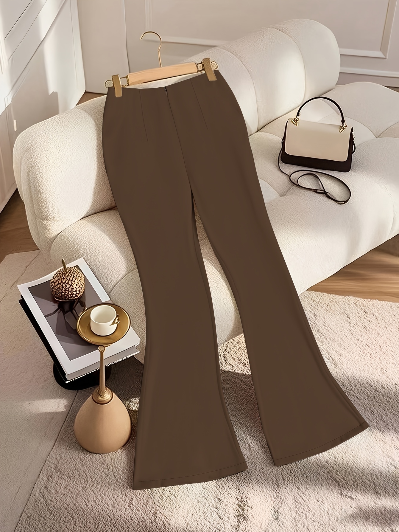 • تصميم عصري وجذاب: يتميز بقصة ساق واسعة (Flare Leg) تضفي لمسة عصرية وجذابة على مظهركِ، مع تصميم بخصر عالٍ يبرز قوامكِ بأناقة ورشاقة.