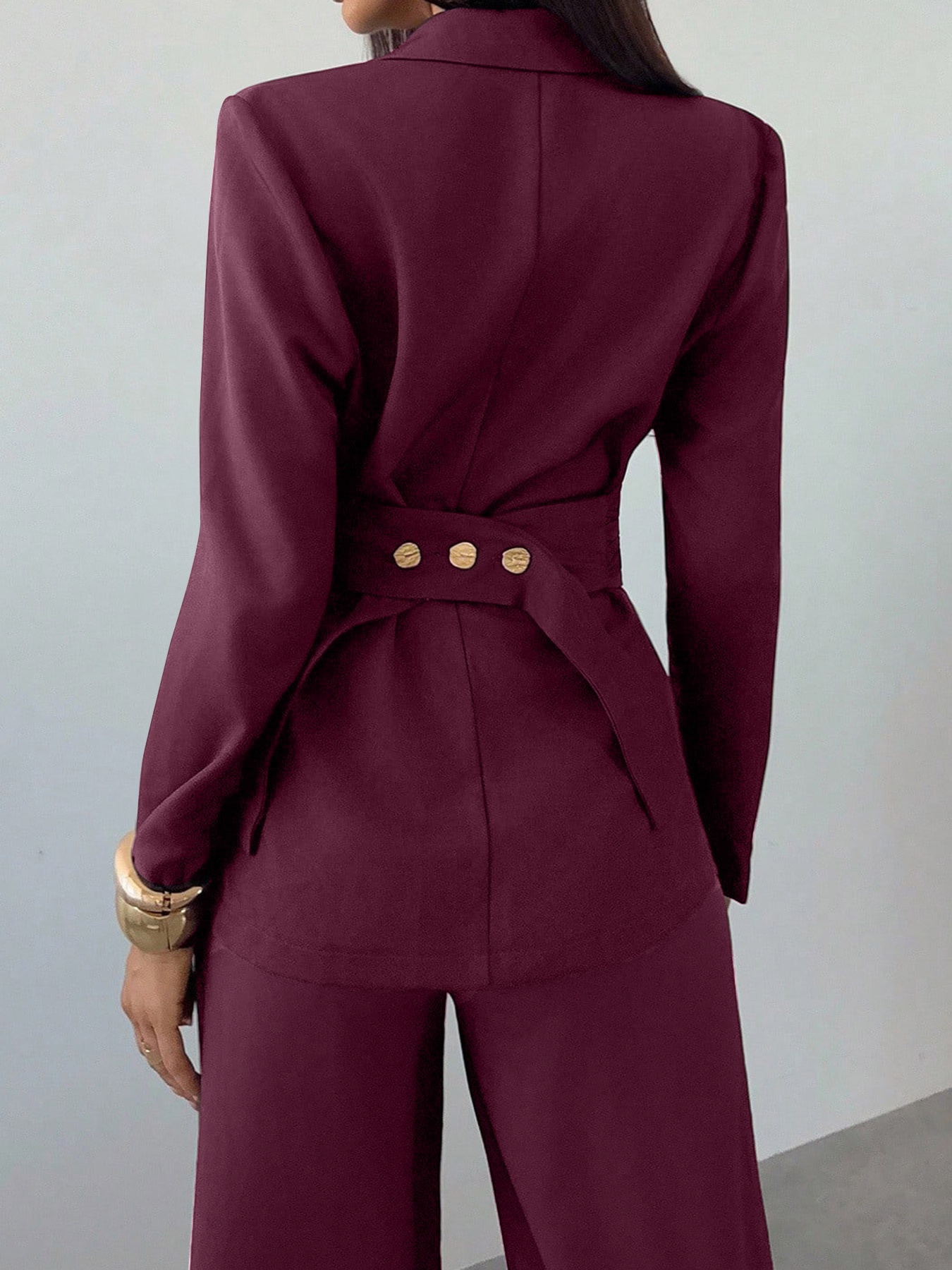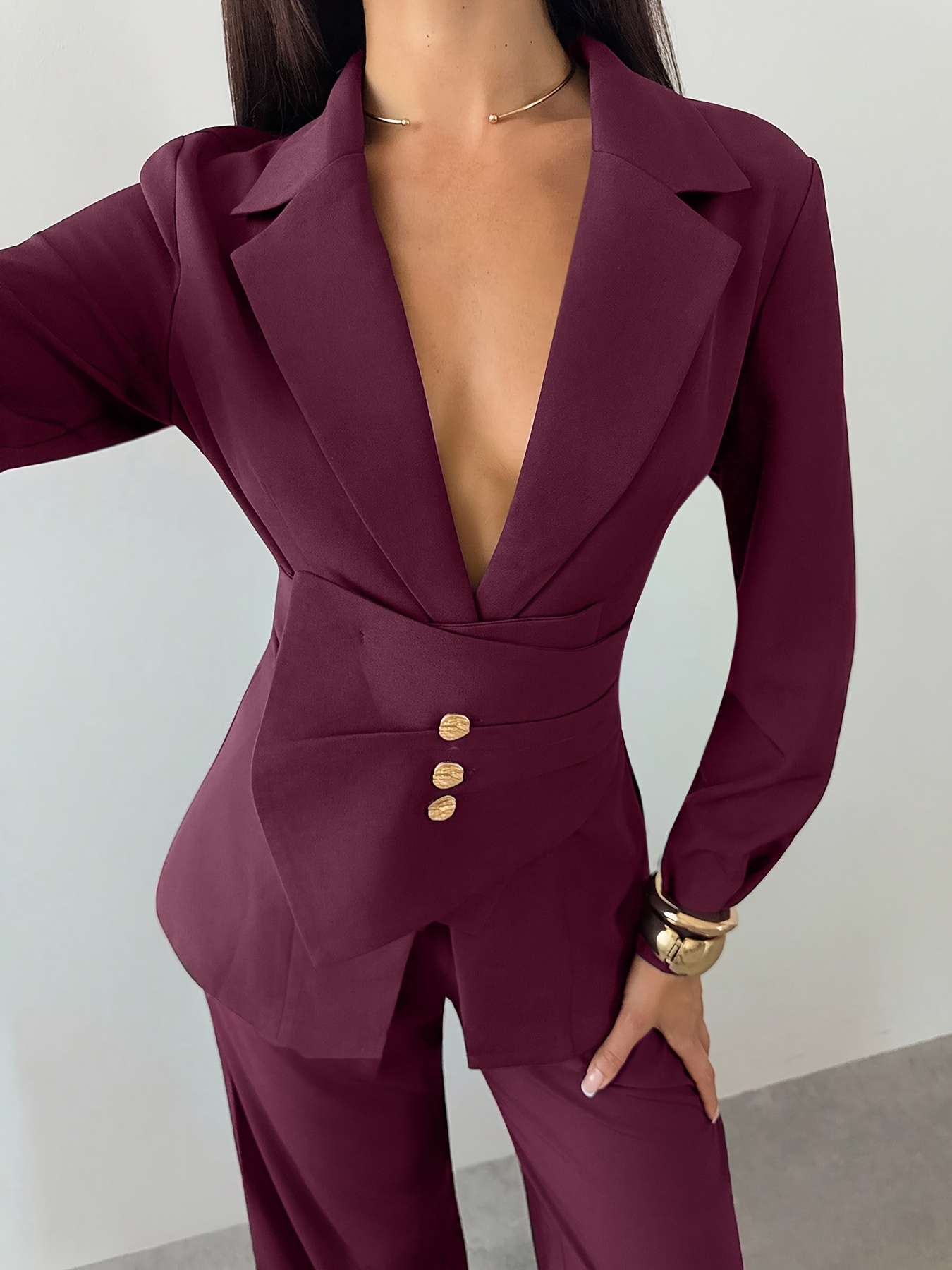 ارتقي بإطلالتك المهنية والأنيقة مع هذا البليزر النسائي الفاخر باللون العنابي الجذاب. مصمم لامرأة عصرية تسعى للتميز والرقي في كل مناسبة، سواء كانت اجتماعات عمل مهمة أو فعاليات رسمية أو حتى لإضفاء لمسة من الأناقة على إطلالاتك الذكية اليومية.