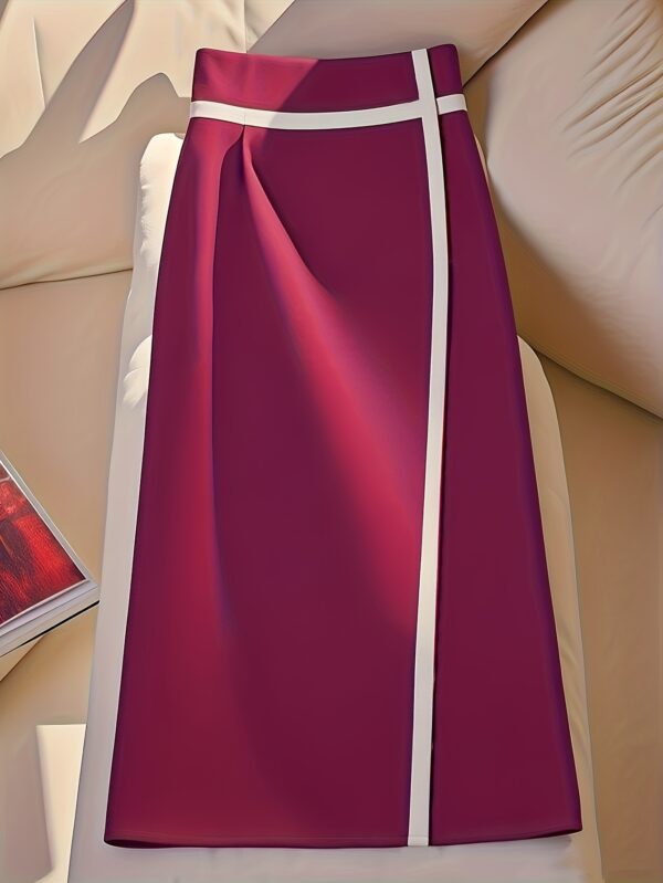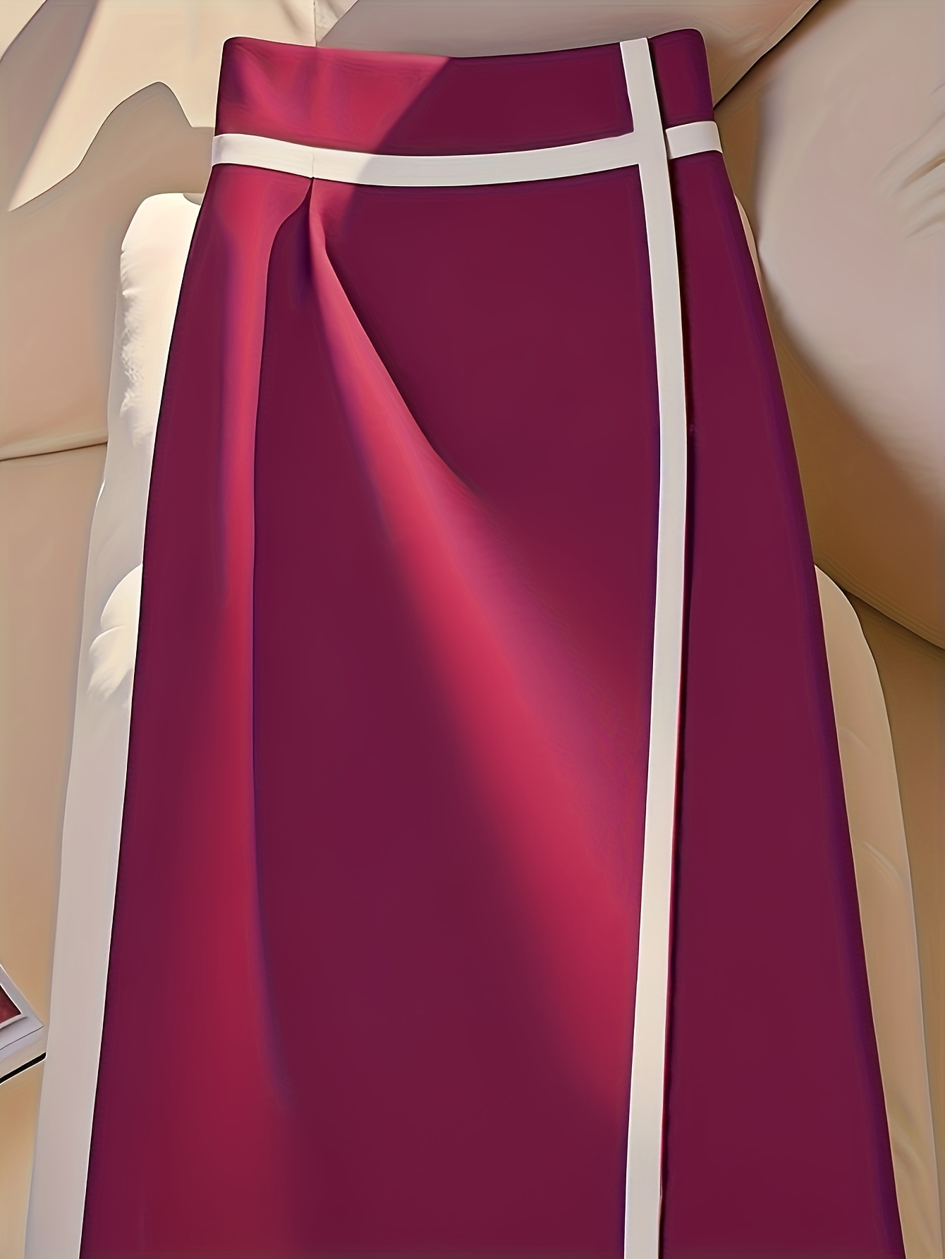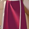 أضيفي لمسة من الفخامة والرقي إلى إطلالتك مع هذه التنورة النسائية الأنيقة بقصة A-Line ولونها الخمري الساحر. تتميز بتصميمها الكلاسيكي مع لمسات الحواف البيضاء الجذابة التي تضفي عليها طابعاً فريداً ومميزاً، مما يجعلها الخيار الأمثل لكل امرأة تبحث عن الأناقة والعملية في آن واحد.