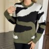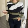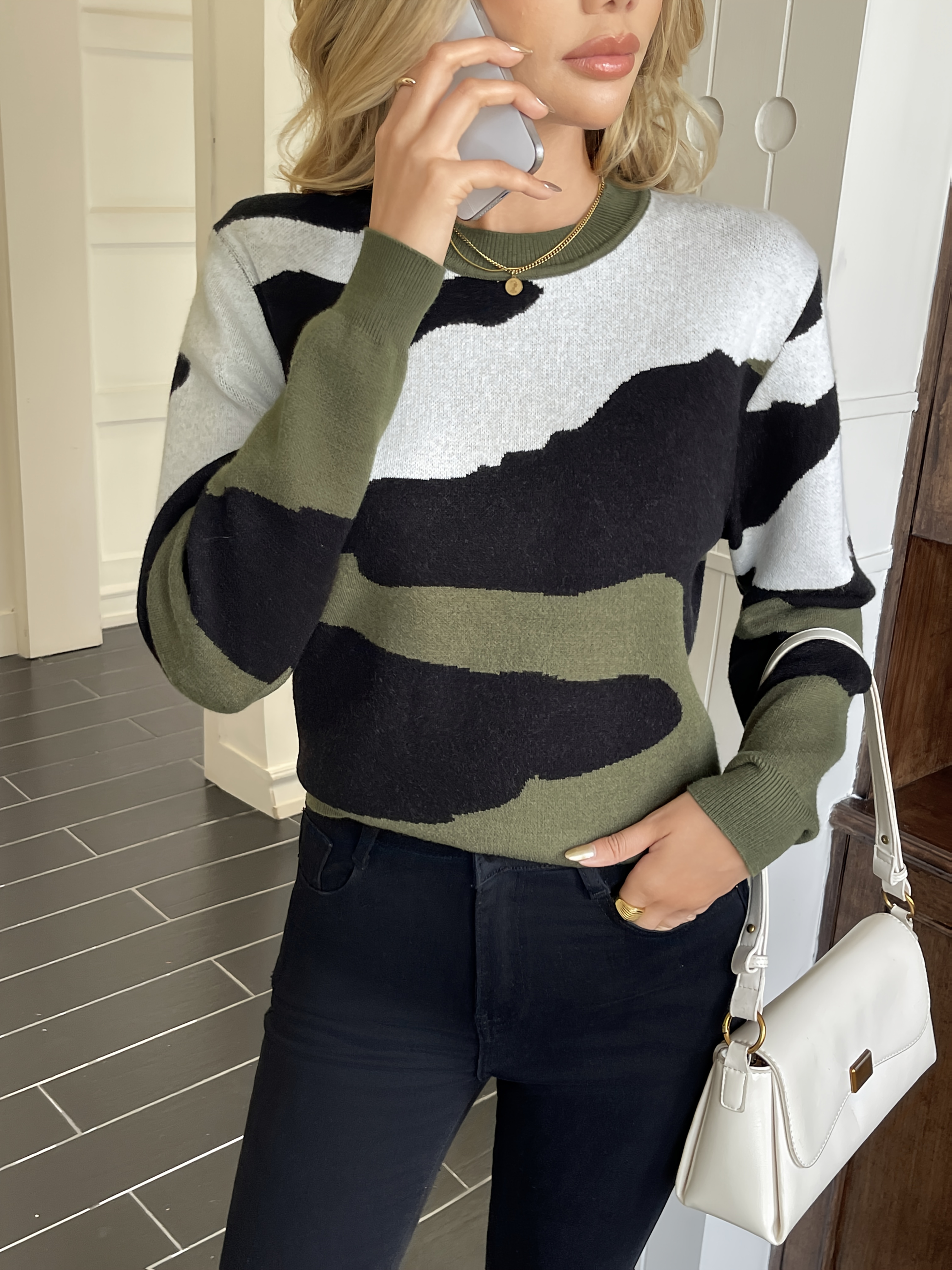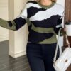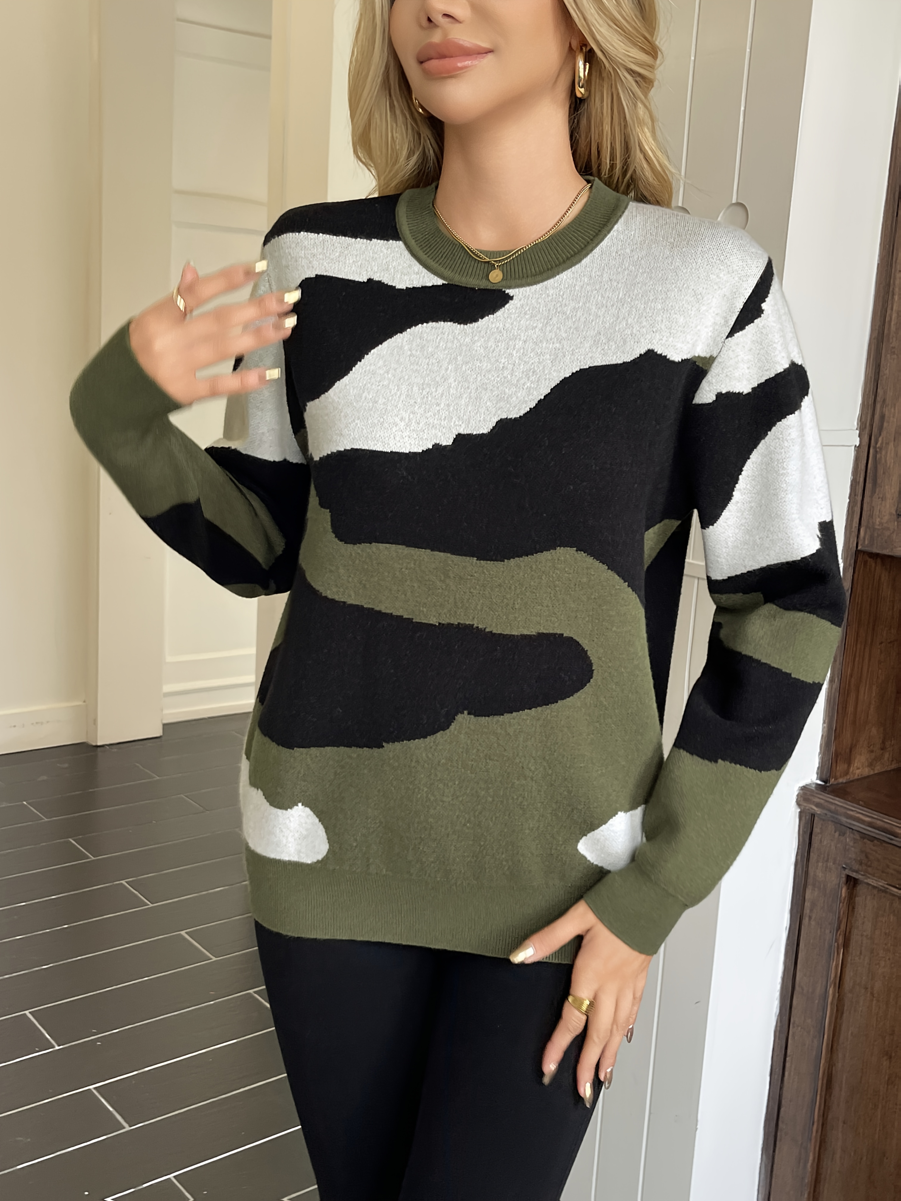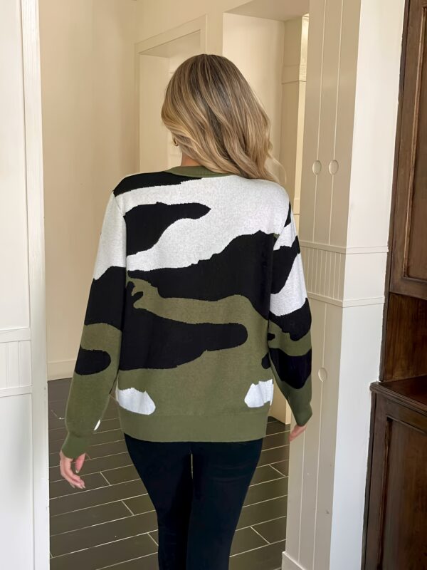 • تصميم فريد ونمط عصري: تتميز هذه السترة بنمط التمويه الأنيق والملفت للنظر، مع قصة دائرية للرقبة وأكمام طويلة، مما يمنحك إطلالة جريئة ومواكبة للموضة في كل مرة ترتدينها.