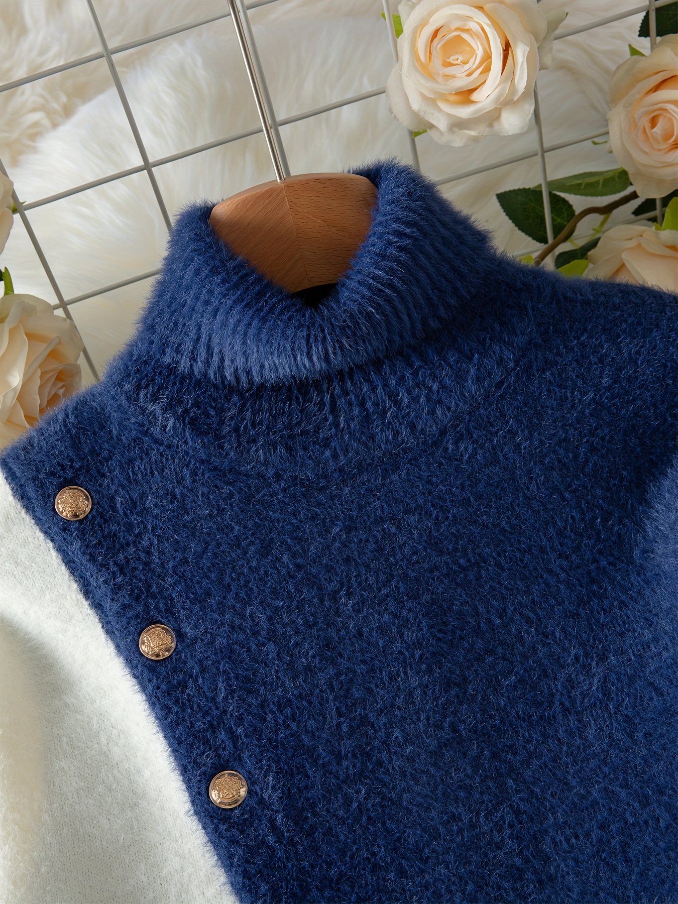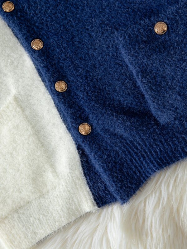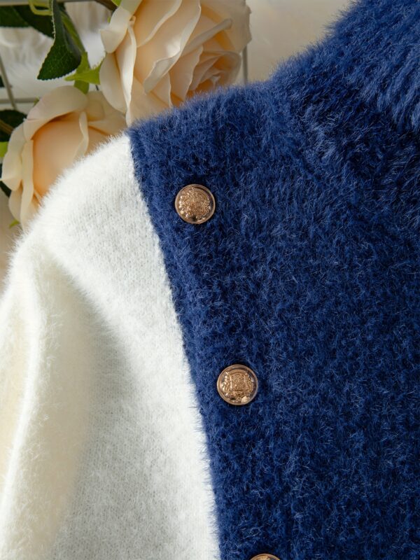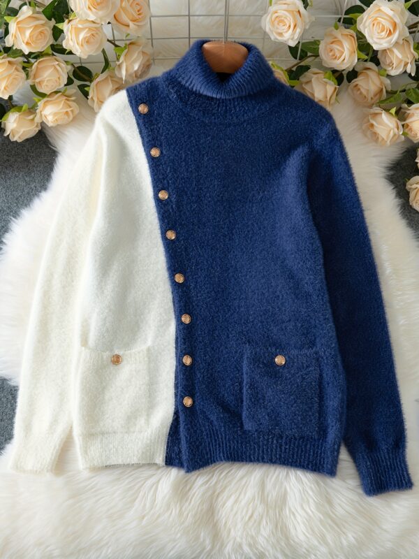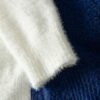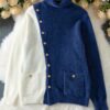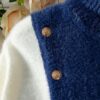 - تصميم كتل الألوان الجذاب: تتميز هذه الكنزة بمزيج متناغم من الأزرق الكحلي والأبيض، مما يخلق تبايناً بصرياً أنيقاً وعصرياً يضفي لمسة من التميز على إطلالتك.