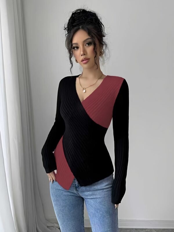 - كتل الألوان المميزة: تصميم فريد بنمط كتل الألوان (Color Block) يضفي لمسة عصرية وجريئة على إطلالتكِ، مما يجعلكِ محط الأنظار.