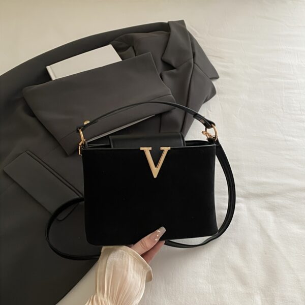 • تفاصيل تبرق بالذهب: تزدان الحقيبة بلمسات ذهبية أنيقة على الأجهزة والمشبك، مما يضيف عليها فخامة وجاذبية لا تقاوم، لتكون محط الأنظار أينما ذهبتِ.