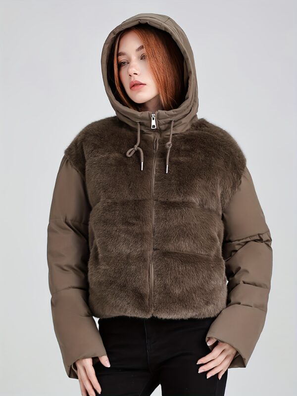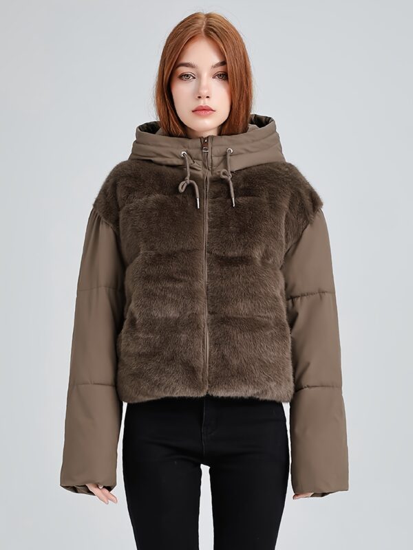 - أناقة عصرية وراقية: يتميز بقصة H-Line الواسعة والقصيرة التي تمنحكِ إطلالة أنيقة وعصرية، مع ياقة من الفرو الصناعي الفاخر تضفي لمسة من الرقي والفخامة. مناسب تمامًا للمناسبات الكاجوال والرسمية على حد سواء.