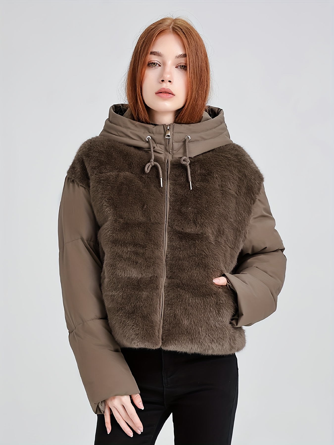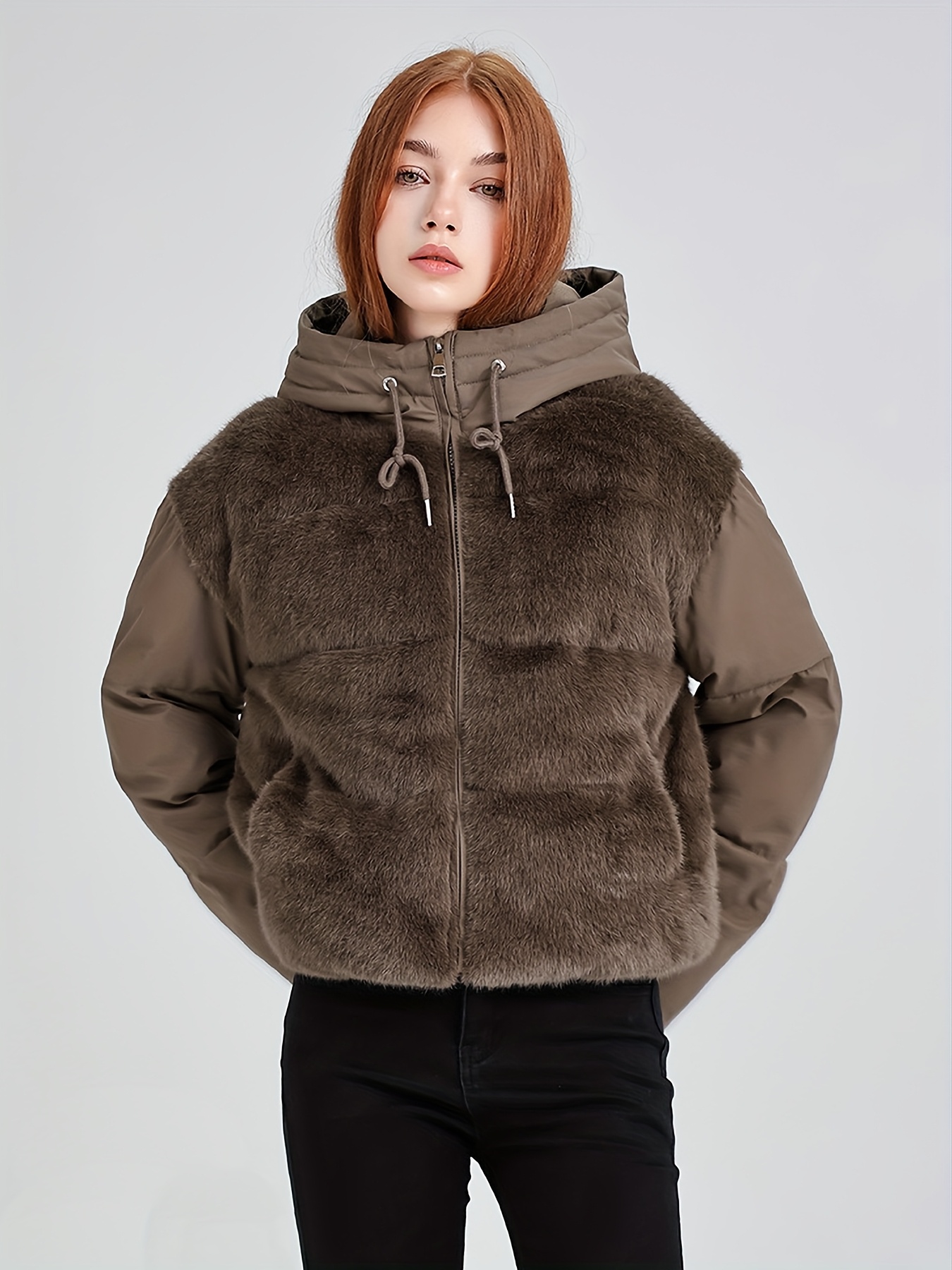 - أناقة عصرية وراقية: يتميز بقصة H-Line الواسعة والقصيرة التي تمنحكِ إطلالة أنيقة وعصرية، مع ياقة من الفرو الصناعي الفاخر تضفي لمسة من الرقي والفخامة. مناسب تمامًا للمناسبات الكاجوال والرسمية على حد سواء.