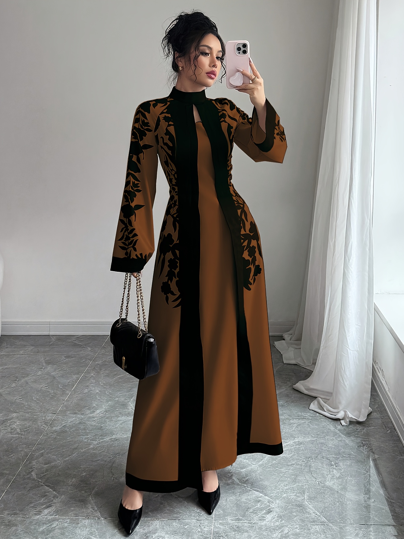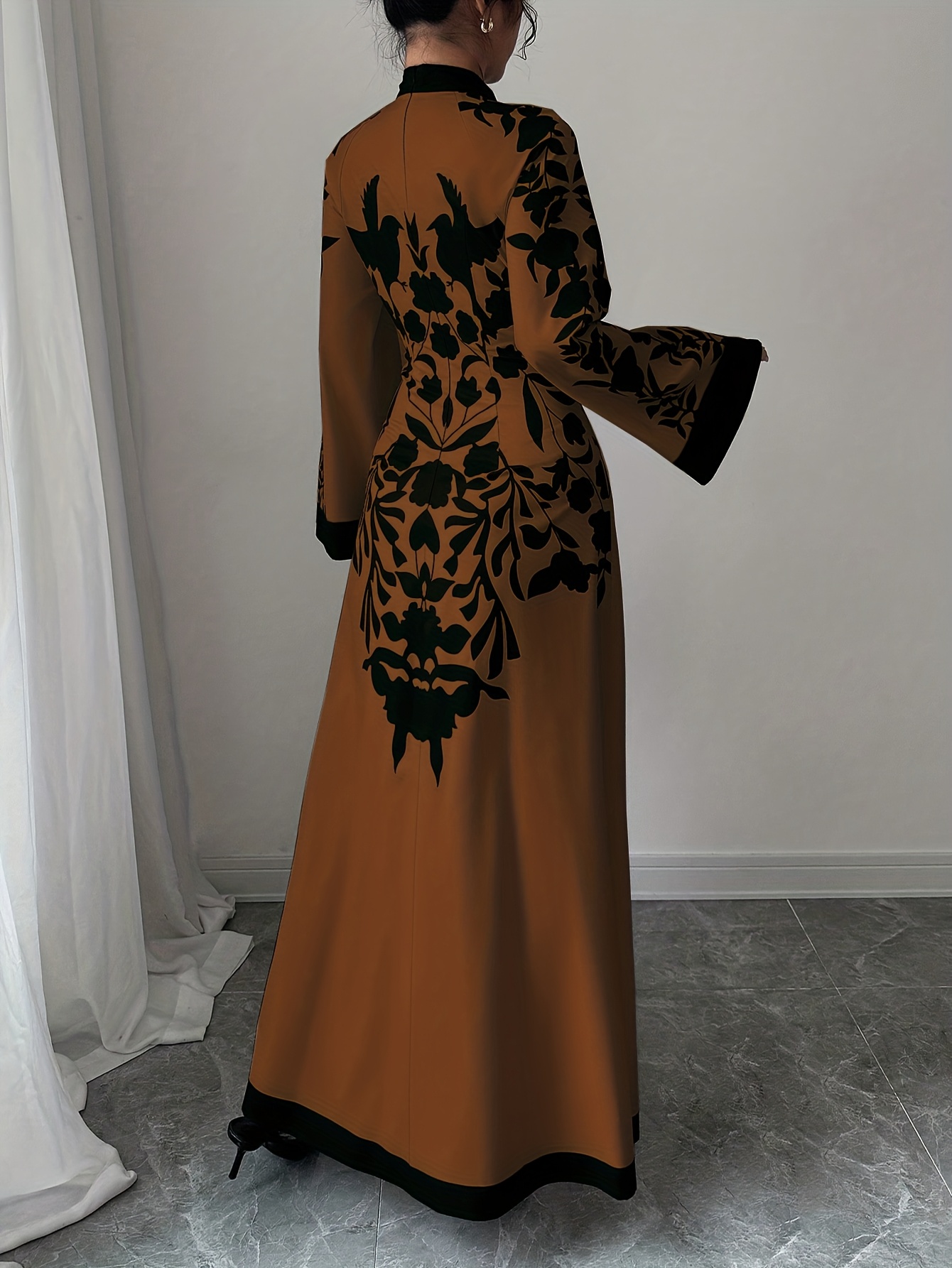 أناقة بلا حدود: فستان نسائي A-Line بنقشة زهور لموسمي الخريف والشتاء