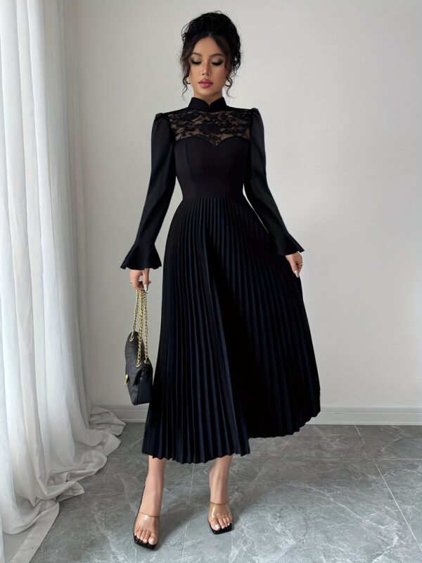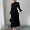 - تصميم راقٍ ومريح: يتميز بقصة A-Line التي تناسب مختلف أشكال الجسم وتضفي لمسة أنثوية ساحرة. الياقة القائمة تزيد من فخامة التصميم، بينما توفر الأقمشة (95% بوليستر، 5% إيلاستين) راحة فائقة ومرونة متوسطة لتتحركي بحرية وثقة.