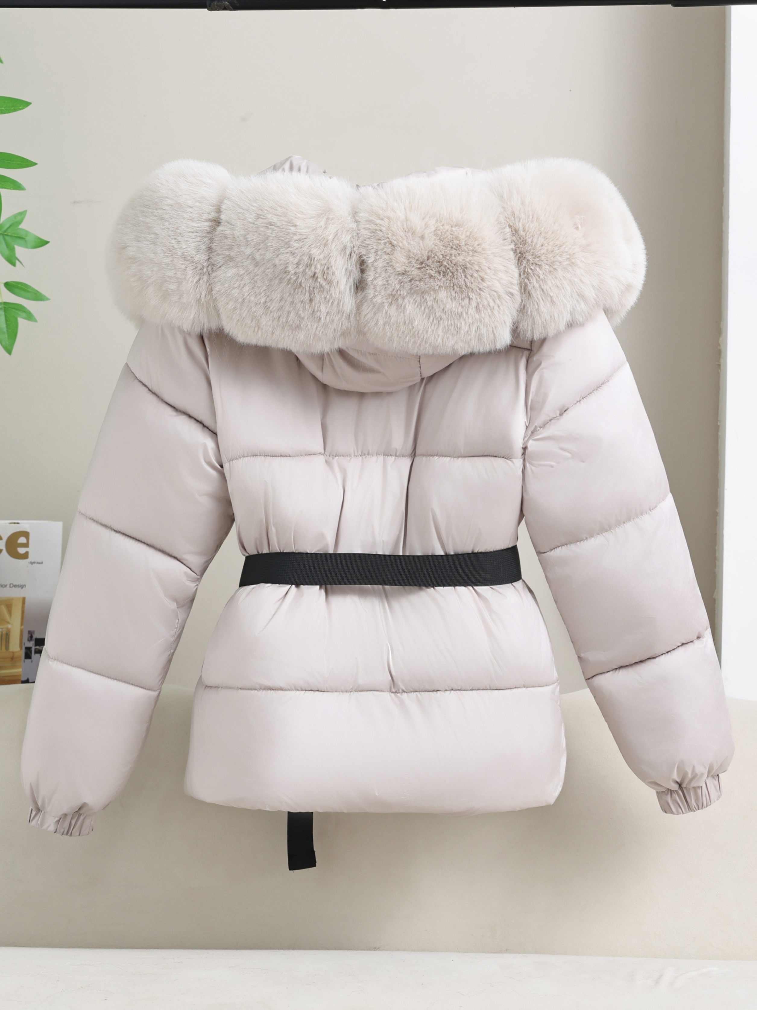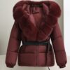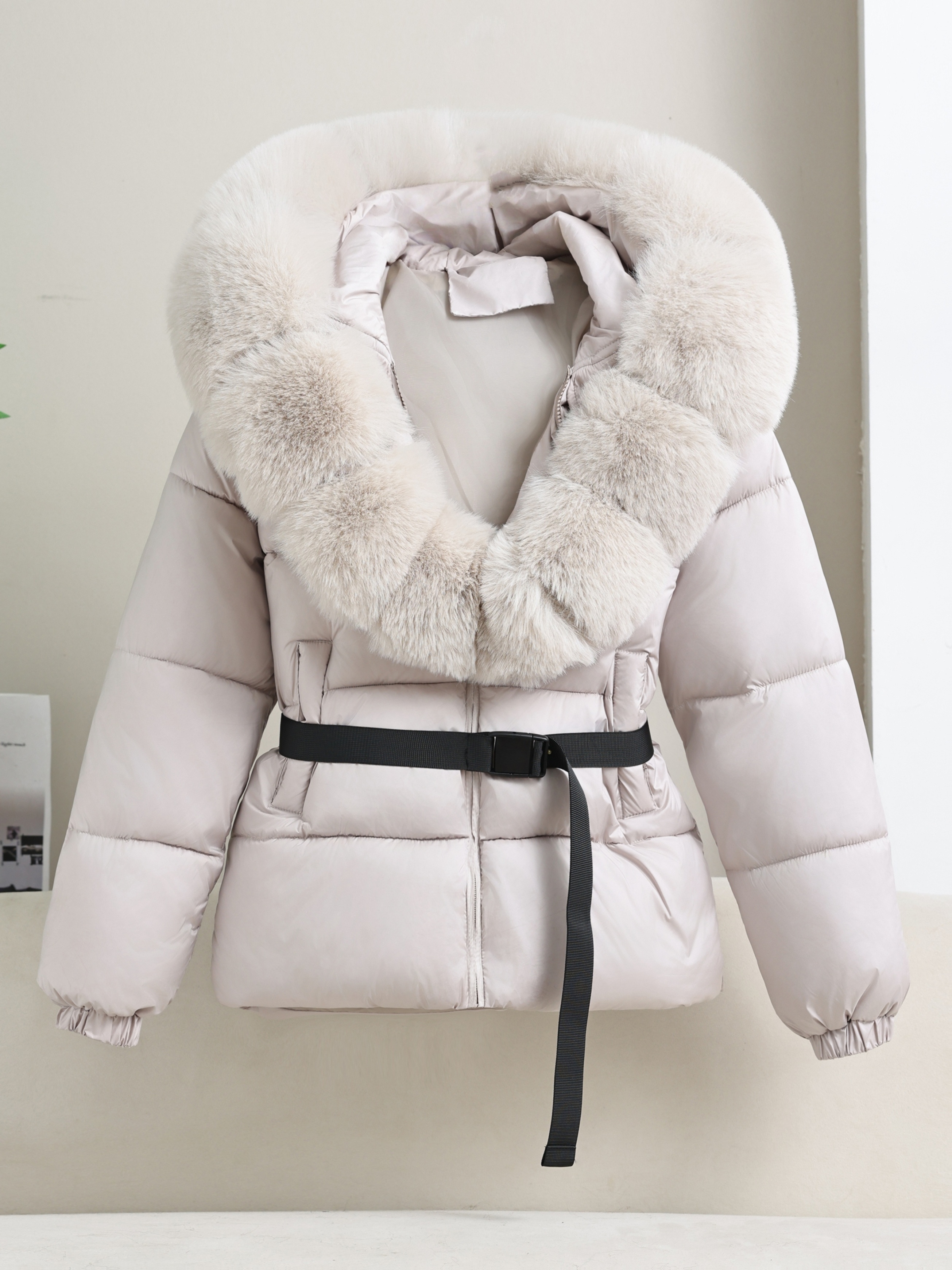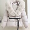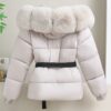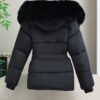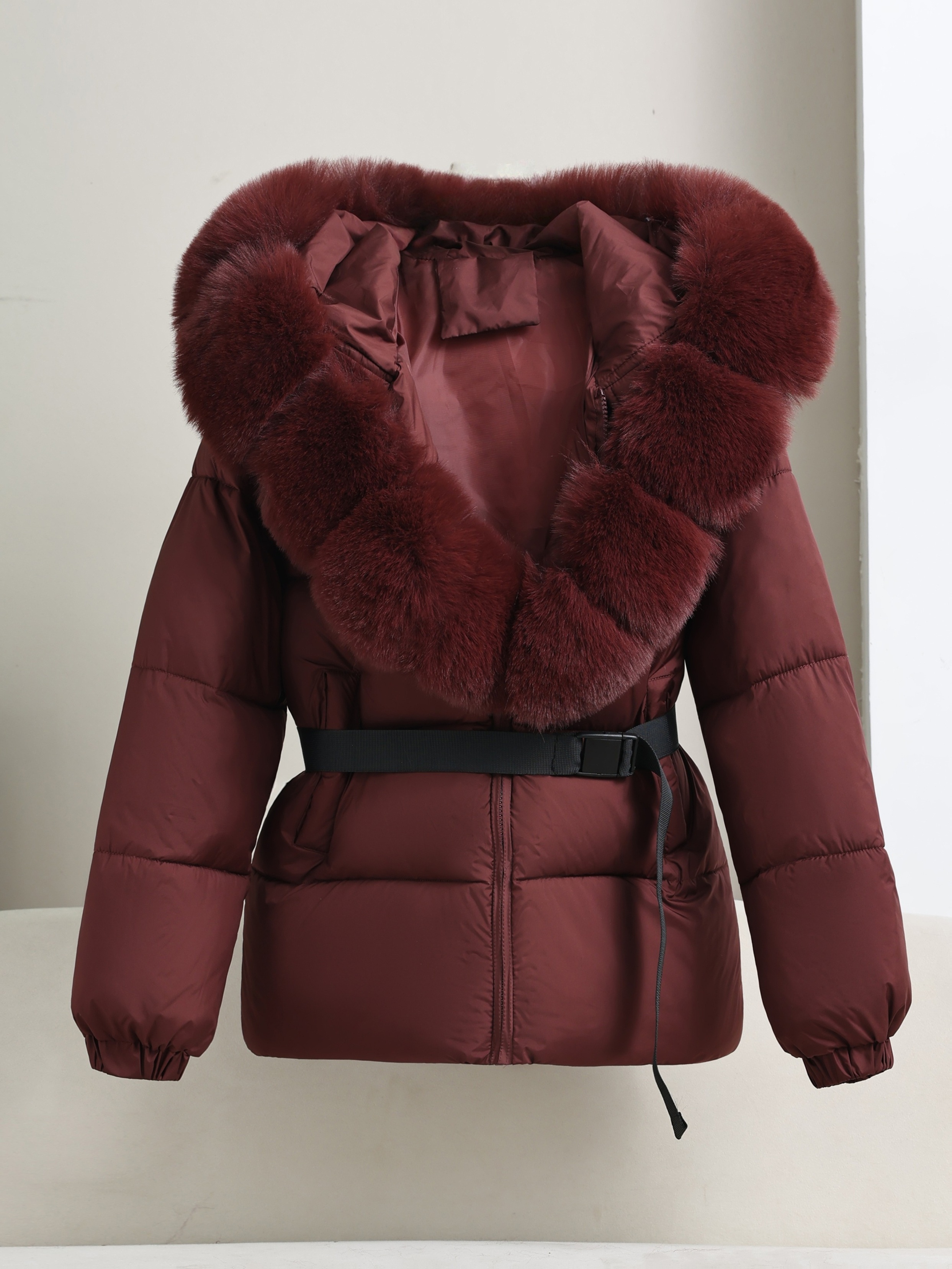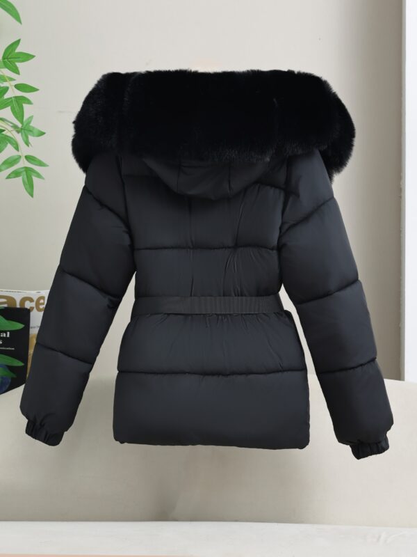 معطف الشتاء النسائي الفاخر: دفء وأناقة لا تضاهى بياقة فرو صناعي مميزة وغطاء رأس قابل للفصل وحزام