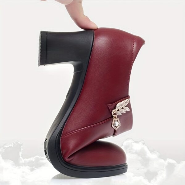 - كعب سميك مرتفع ومريح: استمتعي بالثقة والأناقة مع كعب سميك وعالٍ مصمم ليوفر لكِ الثبات والراحة القصوى، لتتألقي طوال اليوم دون تعب.