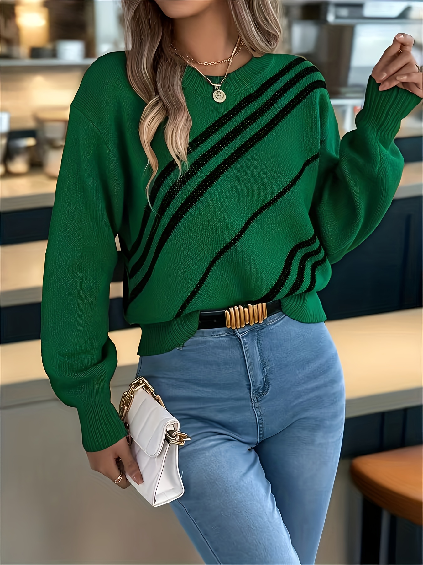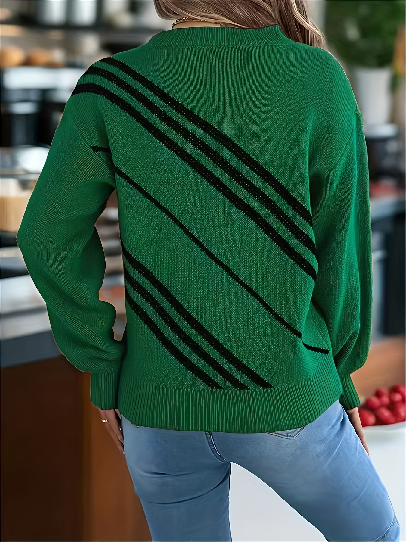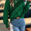 تألقي بدفء: كنزة نسائية خضراء أنيقة مضلعة لجميع المناسبات