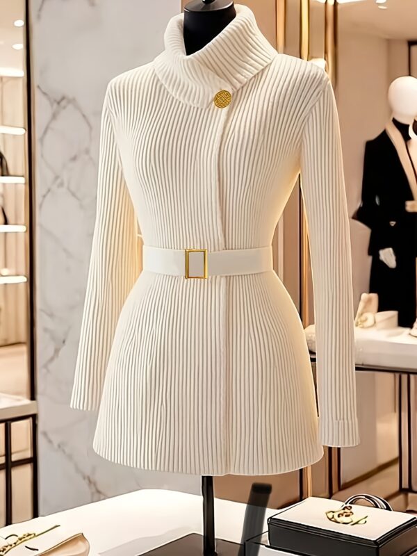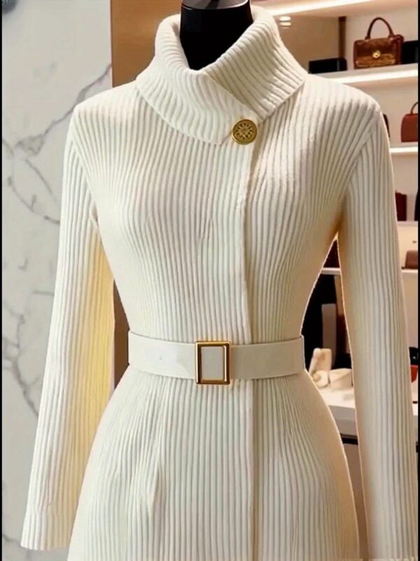 - أناقة عصرية ومتعددة الاستخدامات: يتميز هذا الكارديجان بتصميم بياقة عالية تضفي لمسة كلاسيكية راقية، مع حزام أنيق قابل للتعديل يُبرز جمال خصركِ ويمنحكِ إطلالة جذابة ومحددة. الأزرار الأمامية تسمح لكِ بارتدائه مفتوحًا أو مغلقًا بمرونة تامة، مما يجعله قطعة مثالية للانتقال من المكتب إلى الحفلات بكل سهولة.