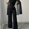 - تفاصيل ترتر أسود براقة: تتلألأ ببريق يخطف الأنظار مع كل خطوة، لتجعلك نجمة الحفل وتبرز جمالك الطبيعي.