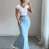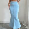 تنورة حورية البحر الأنيقة عالية الخصر من الدنيم المغسول – أناقة وراحة لكل المواسم