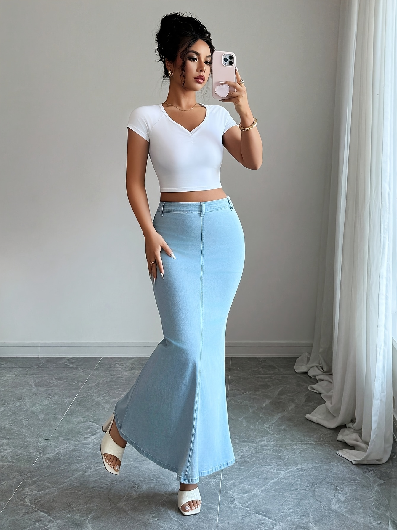 استعدي لتتألقي بأسلوب لا مثيل له مع تنورة حورية البحر الدنيم الأنيقة وعالية الخصر، المصممة لتمنحكِ مزيجًا مثاليًا من الراحة والجمال. سواء كنتِ تستعدين ليوم عمل، أو لقضاء أمسية خاصة، أو حتى لنزهة عفوية، هذه التنورة هي خياركِ الأمثل لإطلالة مفعمة بالثقة والجاذبية في أي وقت من العام.