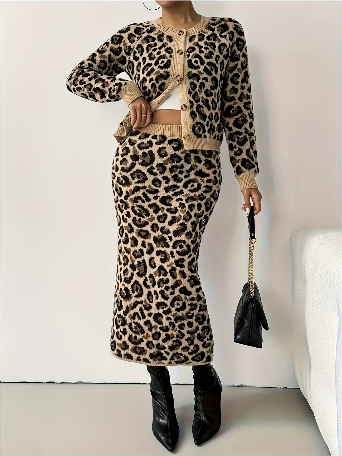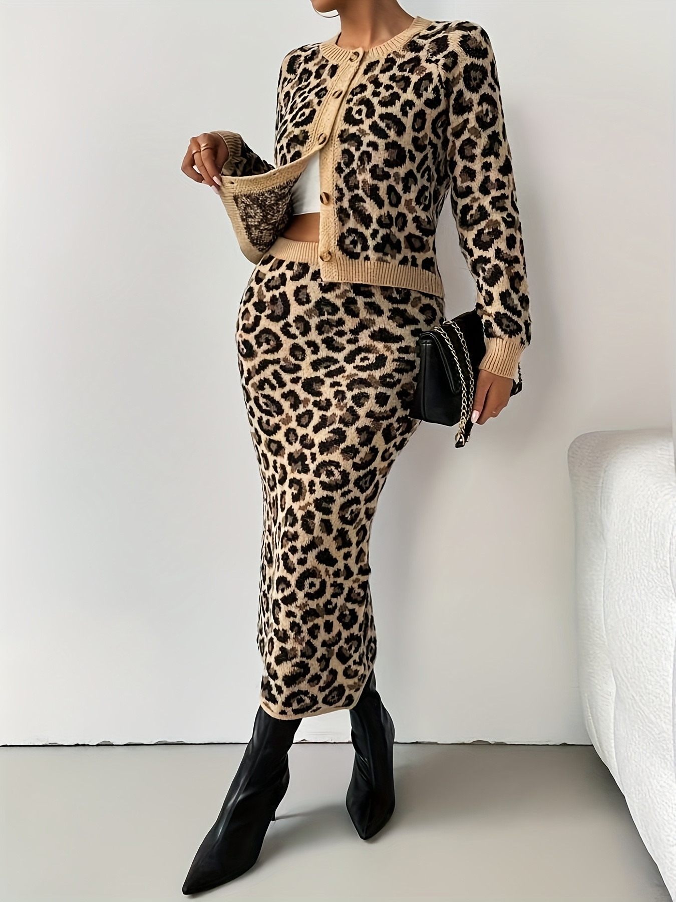 اكتشفي قمة الأناقة والرقي مع طقم الفهد الساحر هذا، المصمم خصيصًا للمرأة العصرية التي تبحث عن التميز. يجمع هذا الطقم الفريد بين الجاذبية العصرية والأناقة الكلاسيكية، ليقدم لك إطلالة متكاملة وجذابة تناسب مختلف مناسباتك الخاصة والعادية في موسمي الخريف والشتاء.