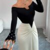 - كتل لونية عصرية: تصميم يجمع بين تدرجات لونية متناسقة تمنح الفستان مظهراً عصرياً وجذاباً يلفت الأنظار.