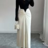 - قصة محددة للقوام: يبرز جمال قوامكِ بأناقة بفضل تصميمه الضيق قليلاً (Bodycon) مع تفاصيل كسرات عند الخصر، مما يضفي مظهراً نحيفاً ومفعماً بالأنوثة.