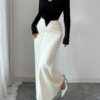 - تصميم أكتاف فريد: يتميز بقصة أكتاف مكشوفة أو كتف واحد، تبرز جمال عنقكِ وتضيف لمسة جريئة وأنثوية راقية.