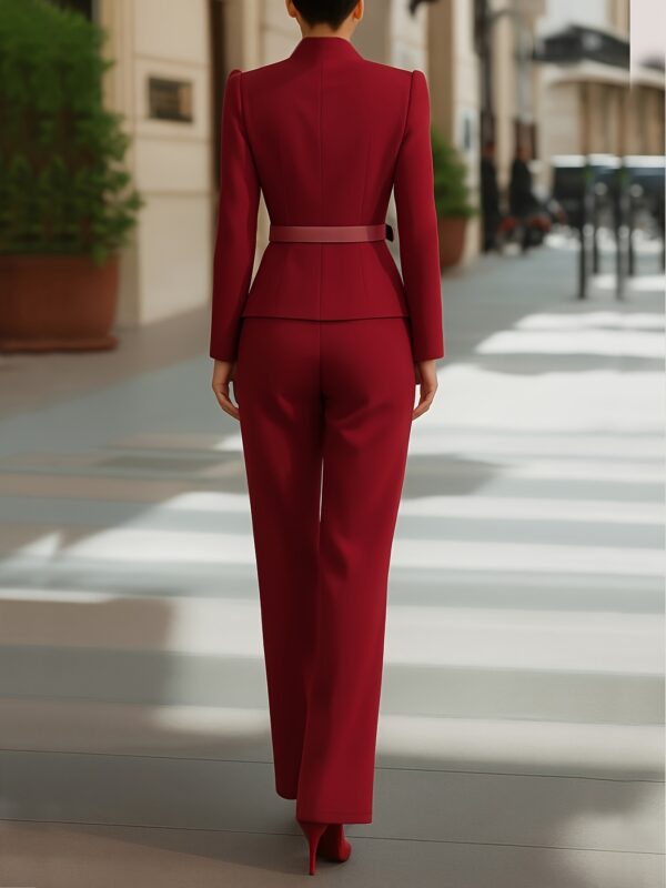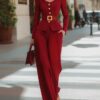 - تصميم متكامل: يتكون الطقم من بليزر رسمي بأزرار وبنطلون واسع الساق، مما يوفر لك إطلالة متناسقة وأنيقة دون عناء.