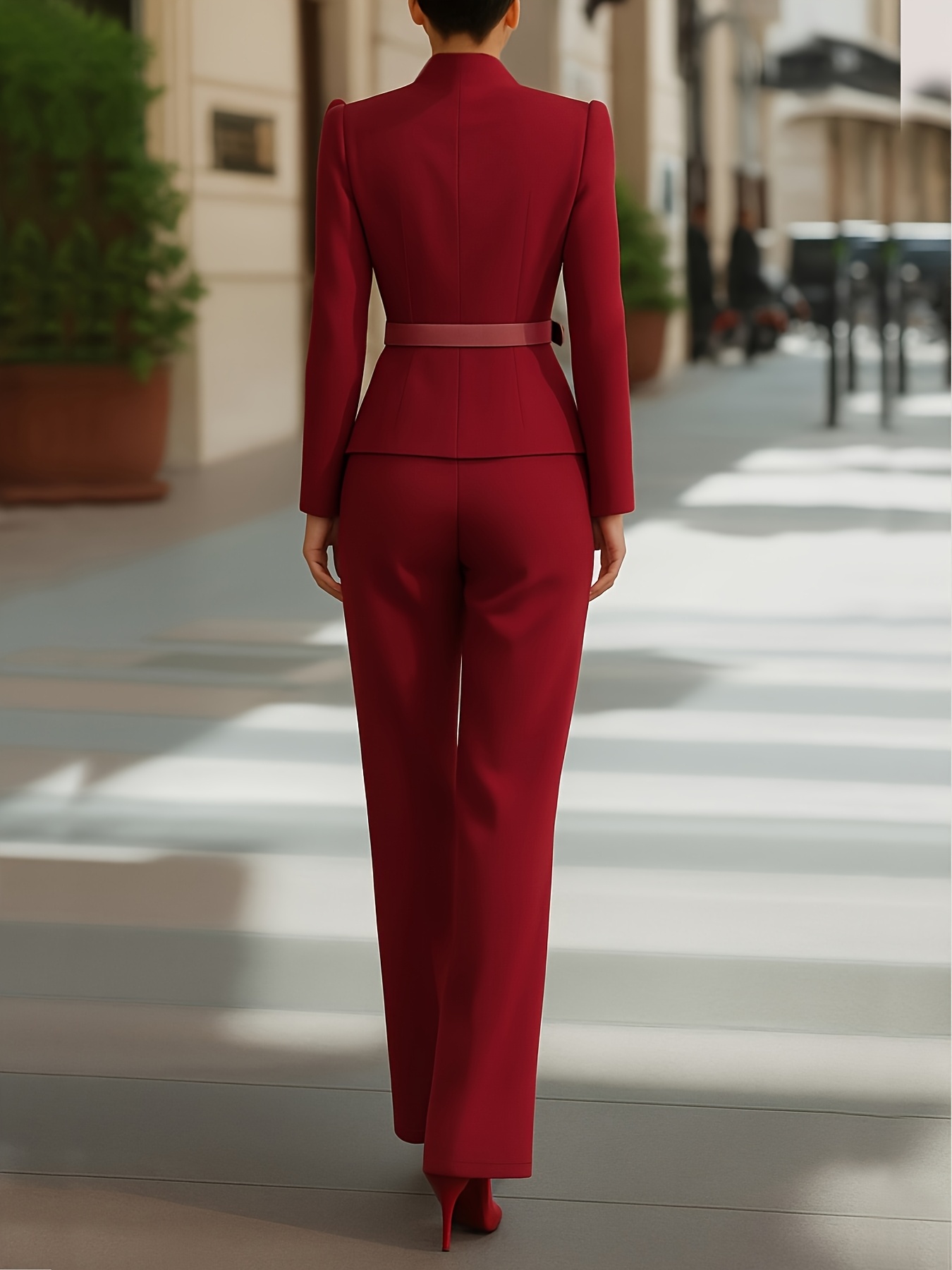 ارتقي بإطلالتك المهنية إلى مستوى آخر مع طقم العمل النسائي الأنيق هذا، المصمم خصيصًا للمرأة العصرية التي تبحث عن الفخامة والراحة في آن واحد. يجمع هذا الطقم بين التصميم الكلاسيكي والعصري ليمنحك حضورًا قويًا وواثقًا في أي بيئة عمل أو مناسبة رسمية.