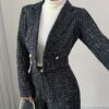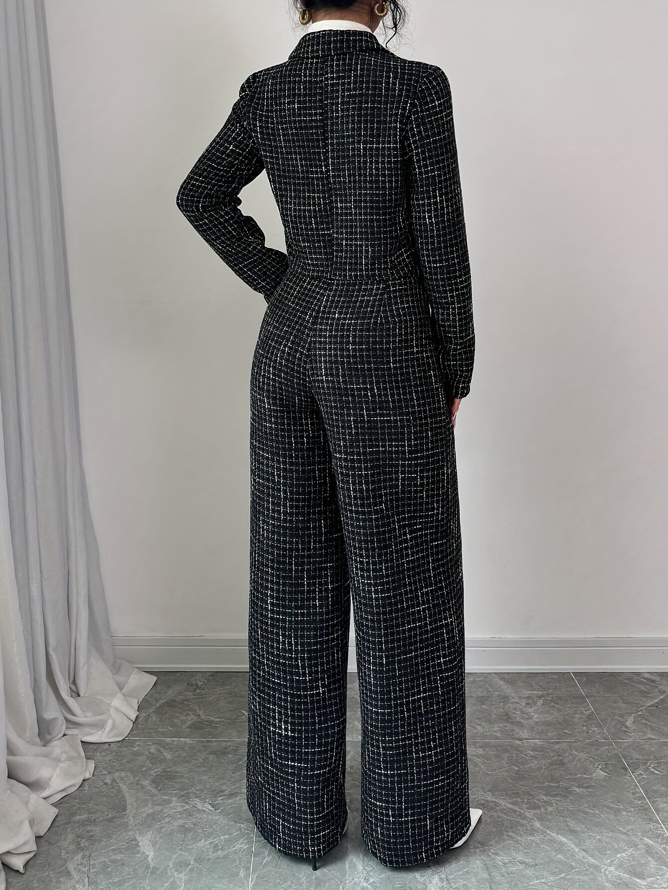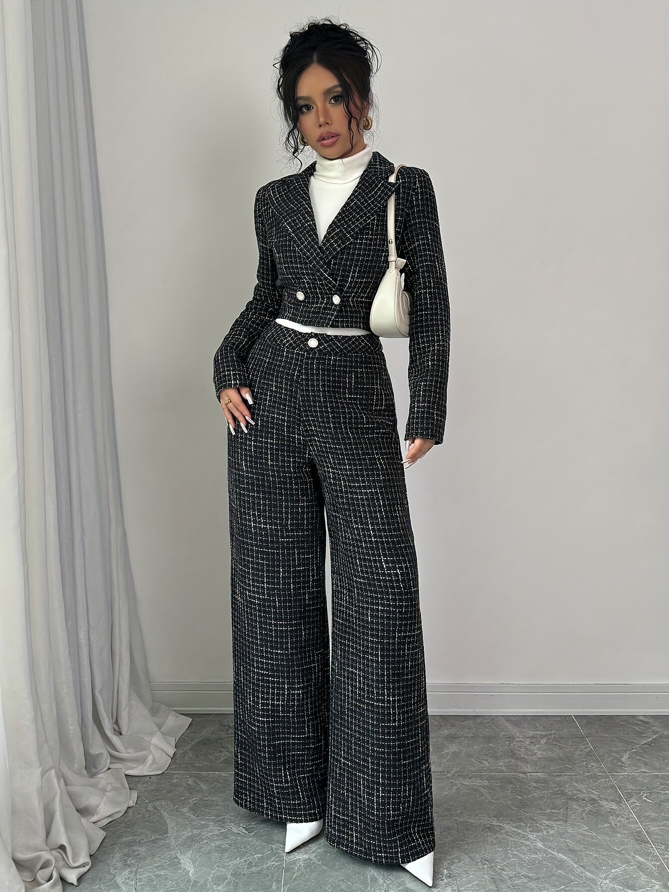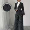 أناقة الخريف والشتاء: طقم نسائي كاروهات جاكيت مزدوج الصدر وبنطال بقصة فضفاضة
